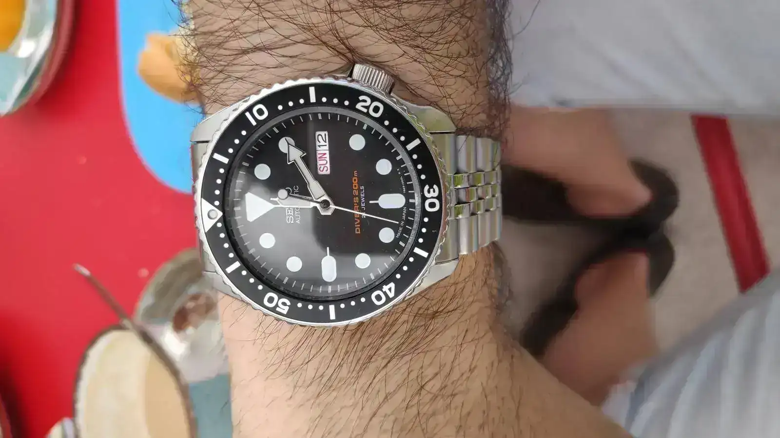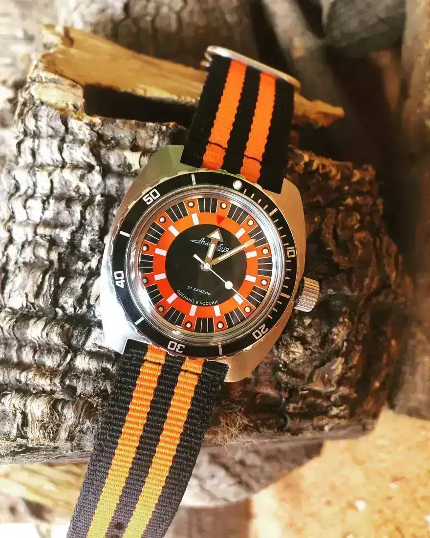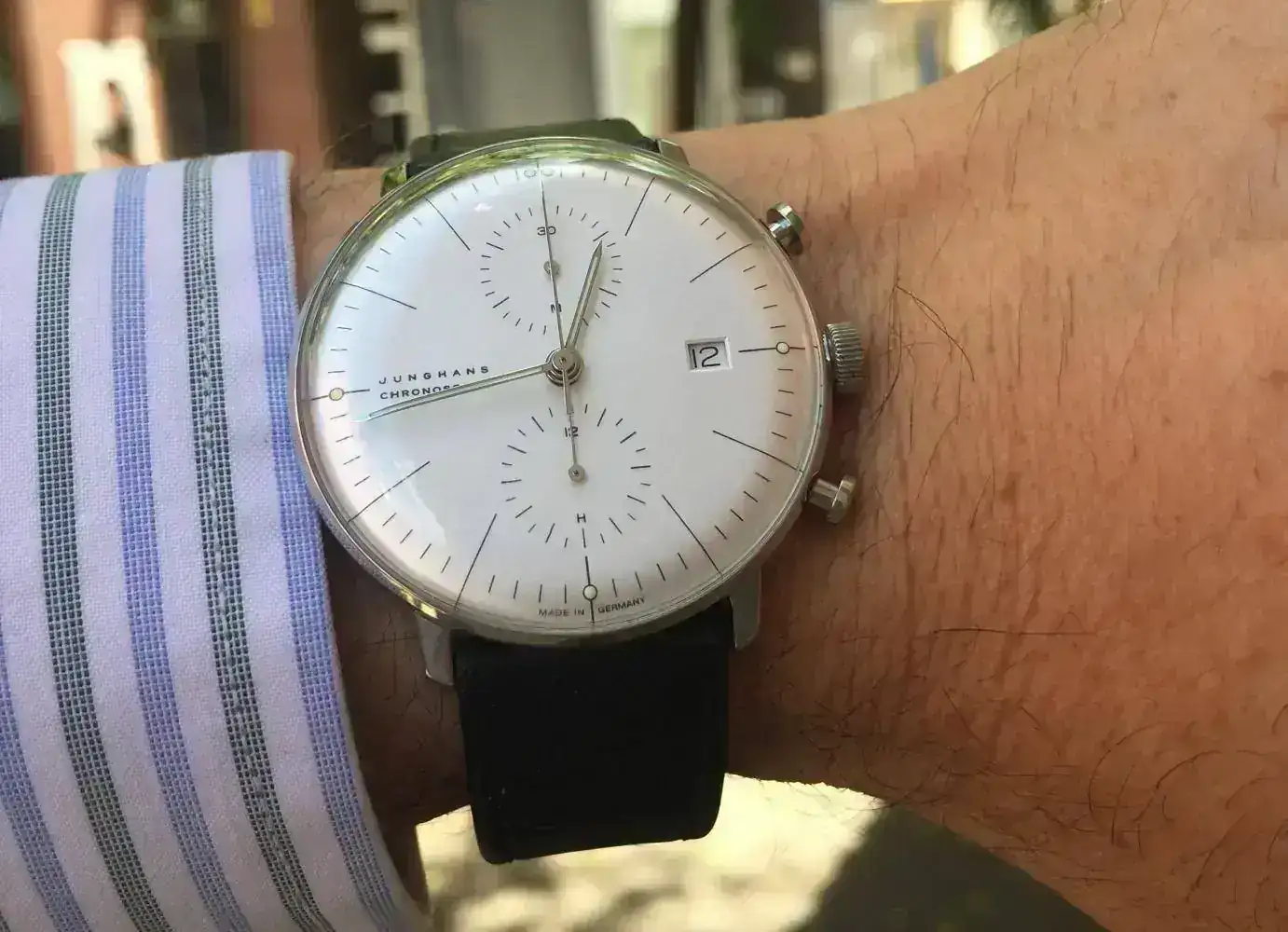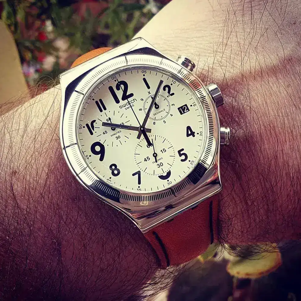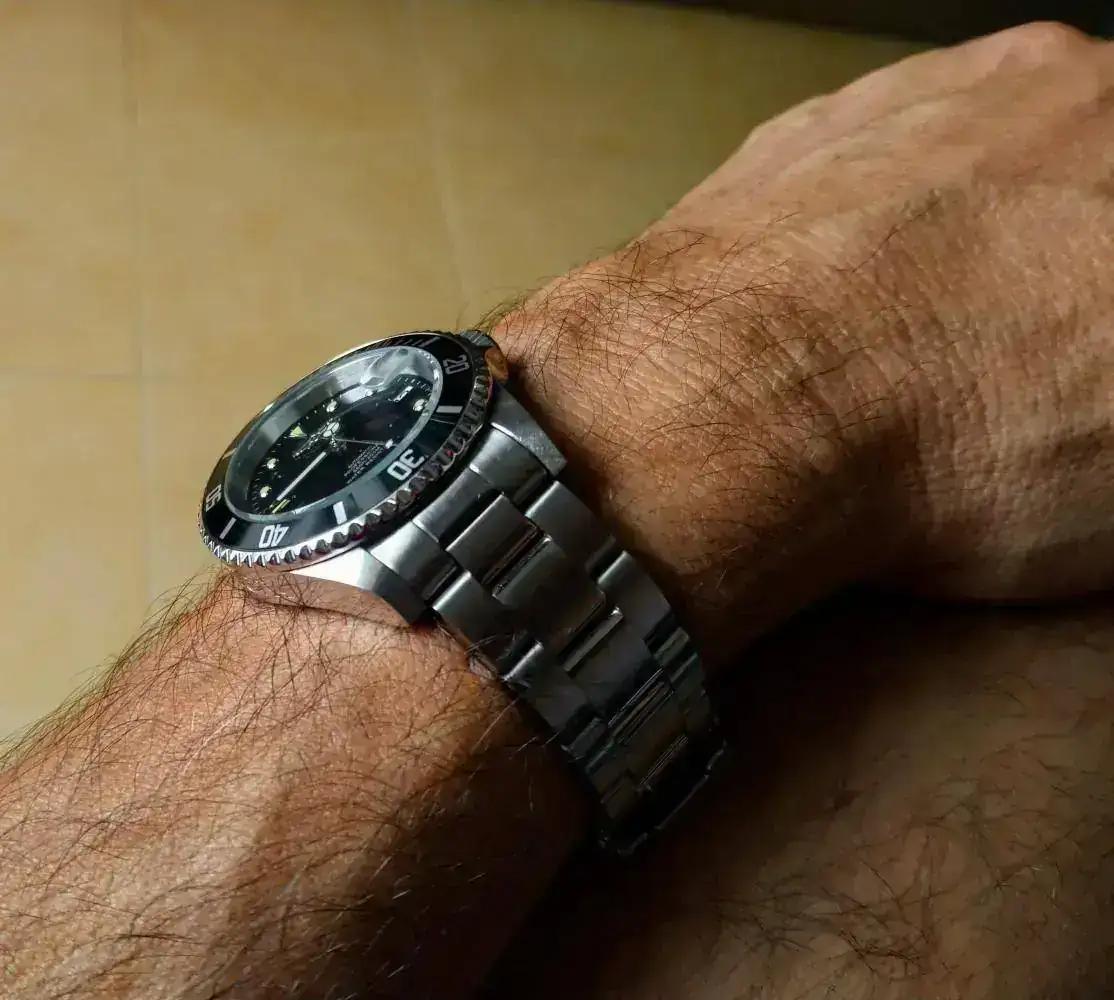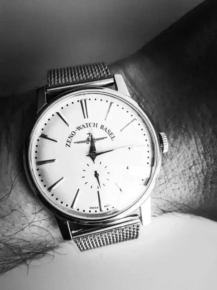 Correcto! Es un caucho en un reloj de piloto de 1973. No sé si será un sacrilegio, pero le queda bien y en verano suelo evitar las correas de piel. Además, es de estreno reciente y así lo puedo llevar puesto en más ocasiones.