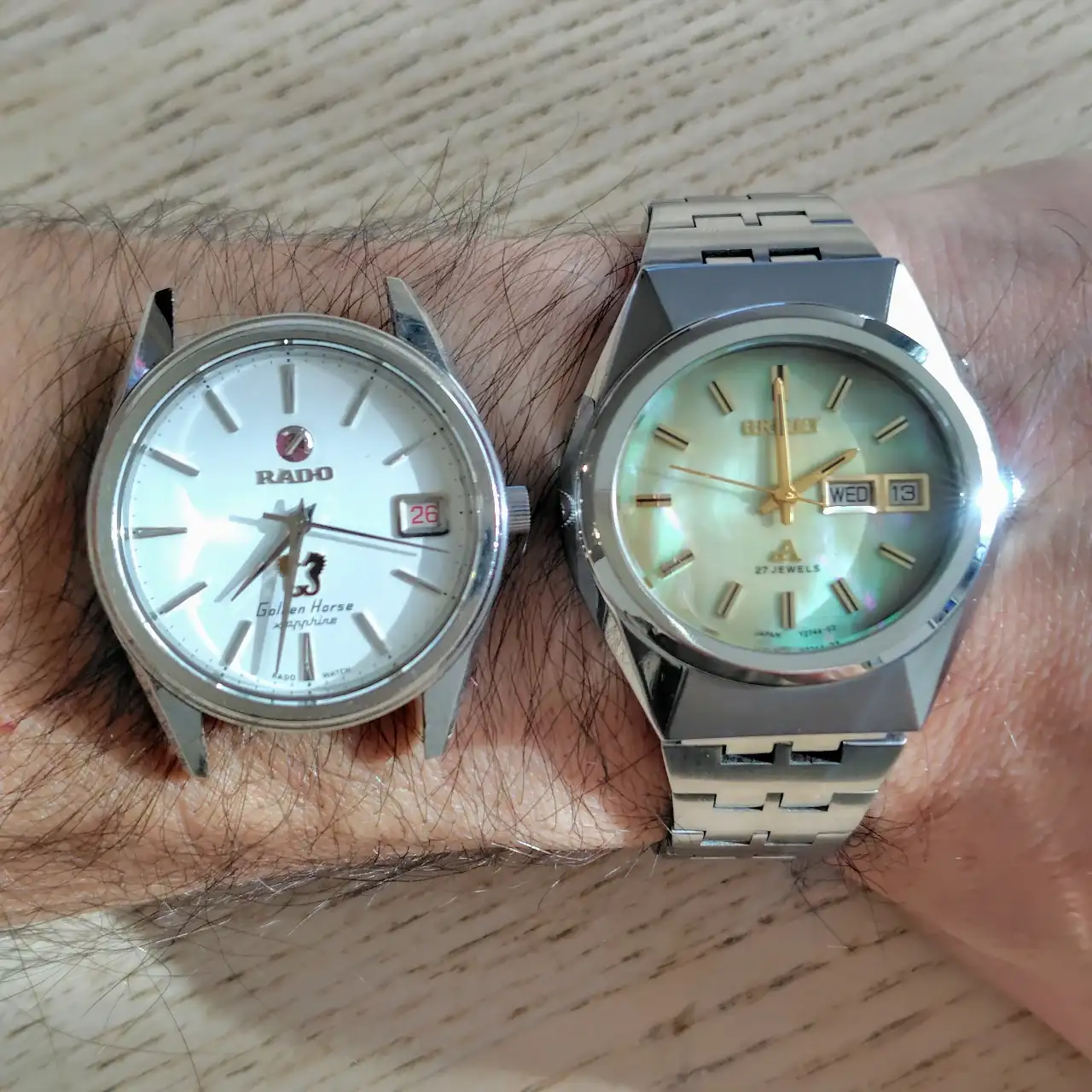 Magníficas piezas ambas. El Orient te quedó nuevo. Ya verás cómo queda ese precioso Rado Golden Horse, con el maravilloso calibre de antaño. Saludos!Orient que restauré hace poco a la derecha, rado que acabo de recibir y sacar del buzón ahora mismo a la izquierda. Empezaremos a restaurar ese radete ya esta semana y os cuento. Tiene una pinta de la leche. Bonito a rabiar las fotos no le hacen justicia.