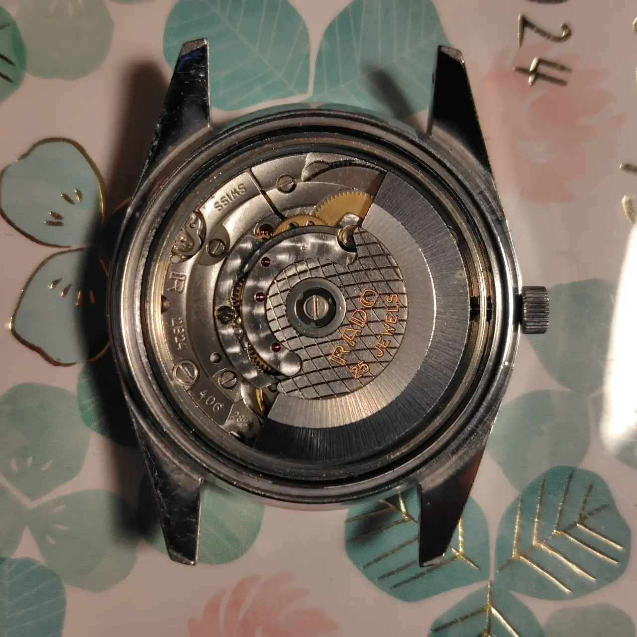 Un 2824 que se ve muy muy bien. Último servicio hecho en 2001 al parecer y va bien en el Timegrapher. La junta de sellado está mal pero lo demás promete mucho. ¡Qué ganas!