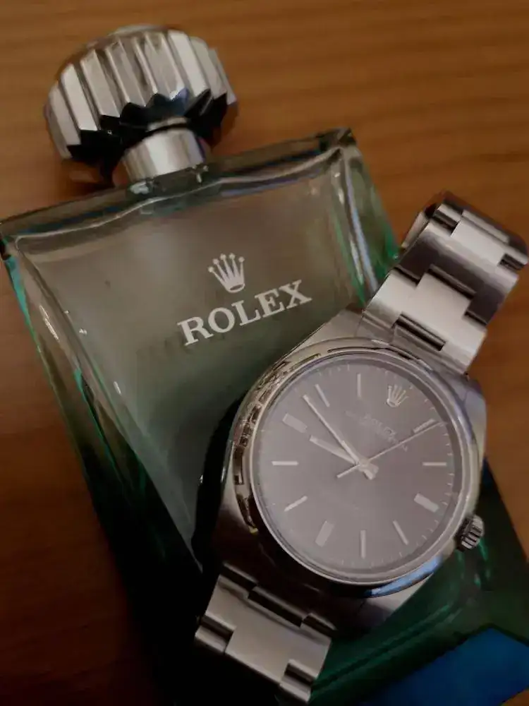 Conjuntado a tope, con este Oyster Perpetual rodio y este perfume Rolex, a mi parecer exquisito.