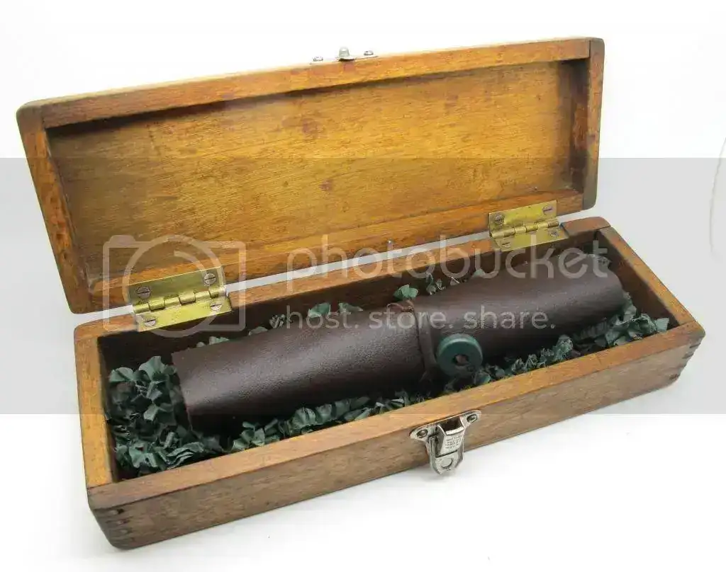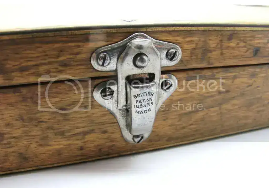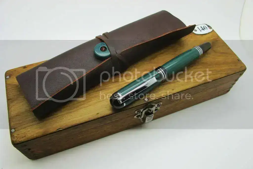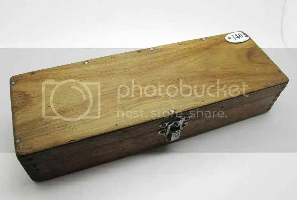 Tiempo me llevó decidir donde guardar la 140. Busqué cajas lacadas para plumas pero no era lo que yo quería para esta pluma necesitaba algo distinto y peculiar, y lo encontré. Se trata una caja muy vieja y usada, remendada con clavos, con una terminación machiembrada, bisagras de latón y un cierre grabado "British Made" con un número de patente. Desconozco para que se utilizaba pero después de un ligero lijado y acabado con cera luce perfecta.
