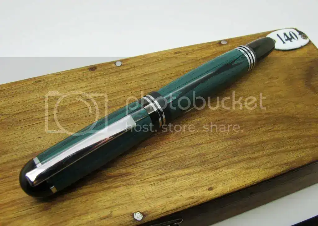 Tenía ganas de utilizar esta ebonita turquesa que compré hace tiempo. Es una ebonita de procedencia alemana con vetas longitudinales, a mi parecer, de las más bonitas que he tenido la ocasión de tener en mis manos. El reto era grande porque no quería centrarme sólo en la construcción de la pluma. Quería algo más y el proceso ha sido largo sobre todo buscar y encontrar los elementos que hacen de esta 140 una pluma especial.