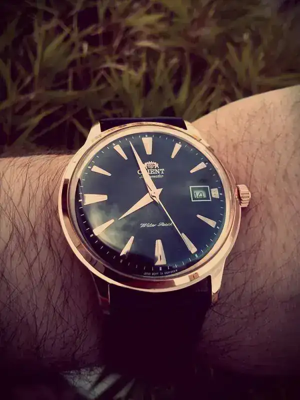 Yo hoy llevo mi nuevo Orient Bambino, un reloj tremendo considerando su bajo precio. En USA lo consigues por alrededor de $180 en el mercado gris pero si haces tu tarea como lo hice yo y compras el último en stock en precisamente la versión que quería en acabado oro rosa, lo conseguí en $107 un verdadero chollo
