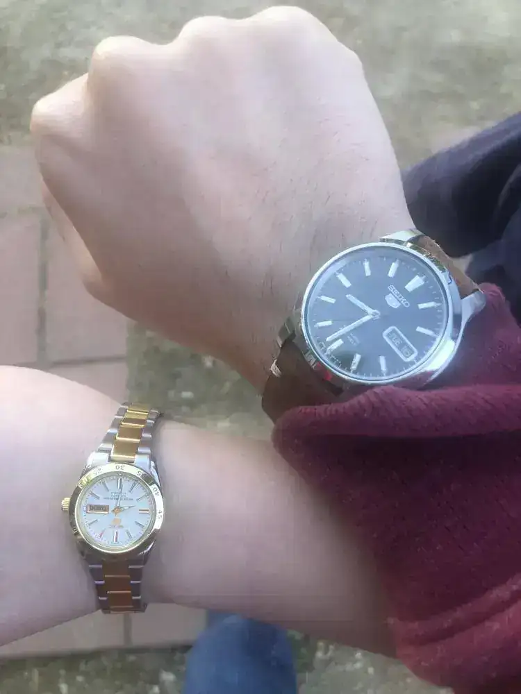 (Foto de ayer pero hoy sale el mismo) Quedé ayer con unos amigos y me encuentro con que una amiga lleva también un Seiko 5 como yo. La afición se extiende!