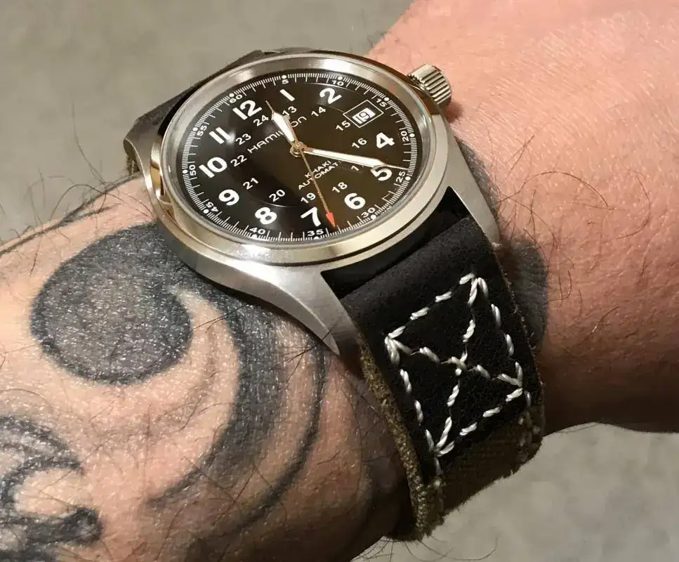 Acertadisima combinacion de reloj militar y correa. Muy bonito.
