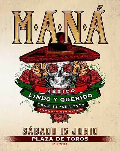 Por no poder asistir, vendo 2 entradas de pista para el concierto que ofrecera la banda mexicana Mana en la plaza de toros de Murcia el día 15 junio.