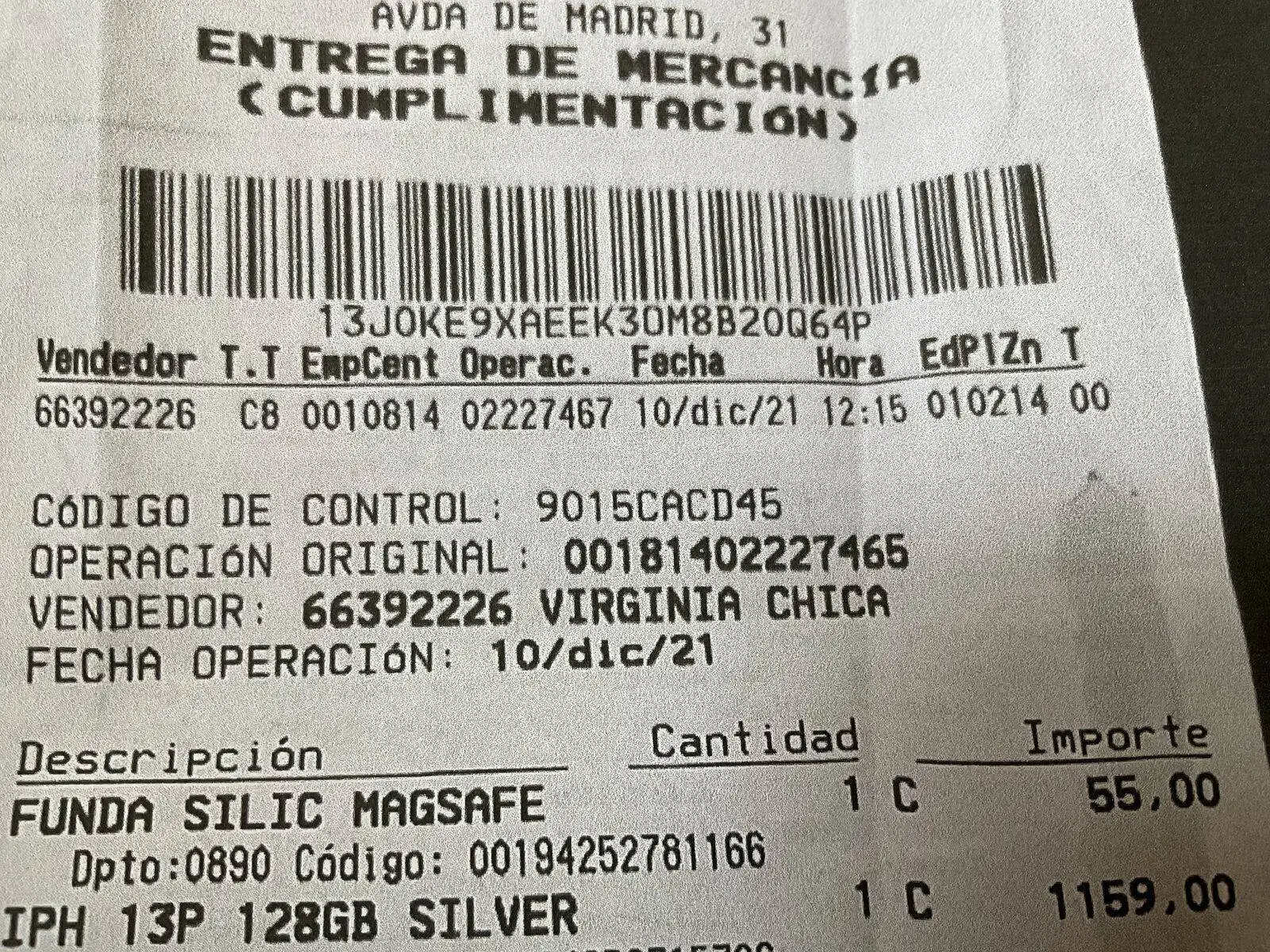 Dispone de tiquet de compra de El corte Inglés para los 2 años de garantía. 980€