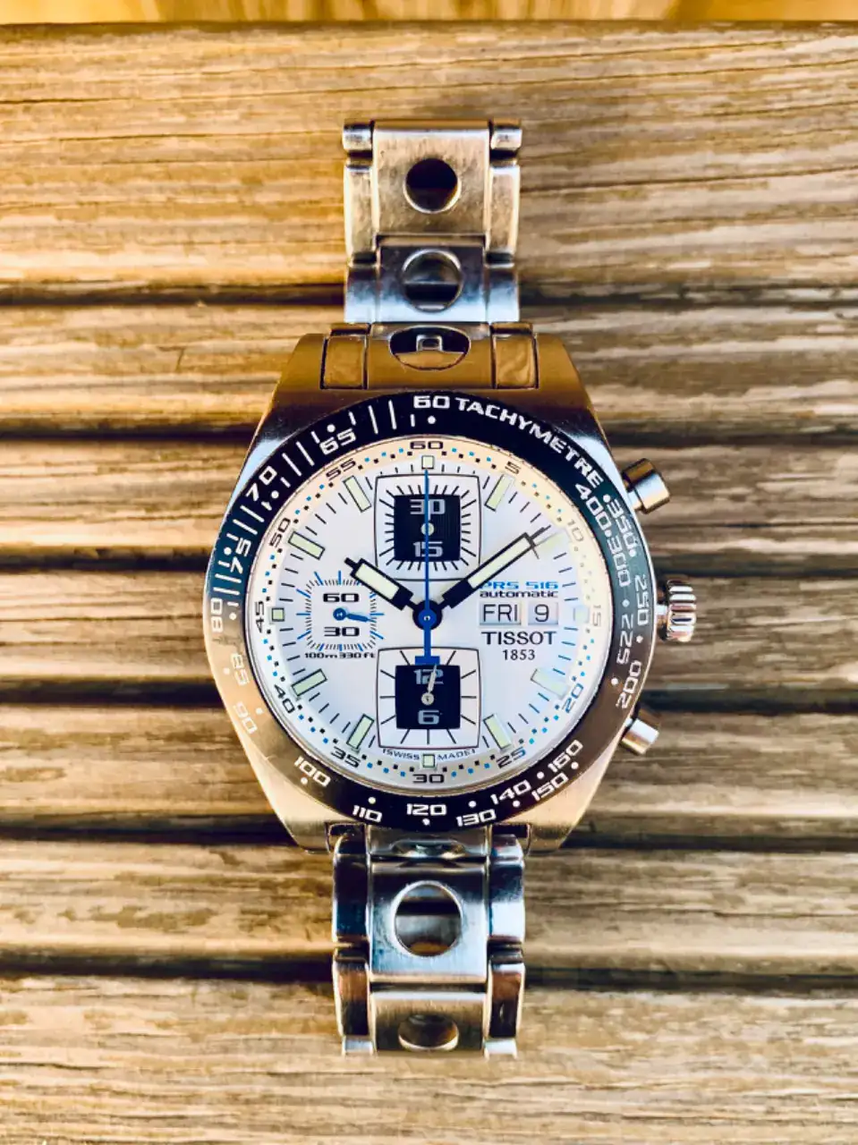 El elegido fue mi querido Tissot PRS 516, mi primer automático, y ese reloj que nunca me falla. Puedo ir en bañador, con vaquero, pantalón corto o con traje y siempre me va bien. Si algún día dudo, lo cojo y acierto seguro. Posiblemente, mi reloj más querido y usado. 17 años largos y va como un tiro.