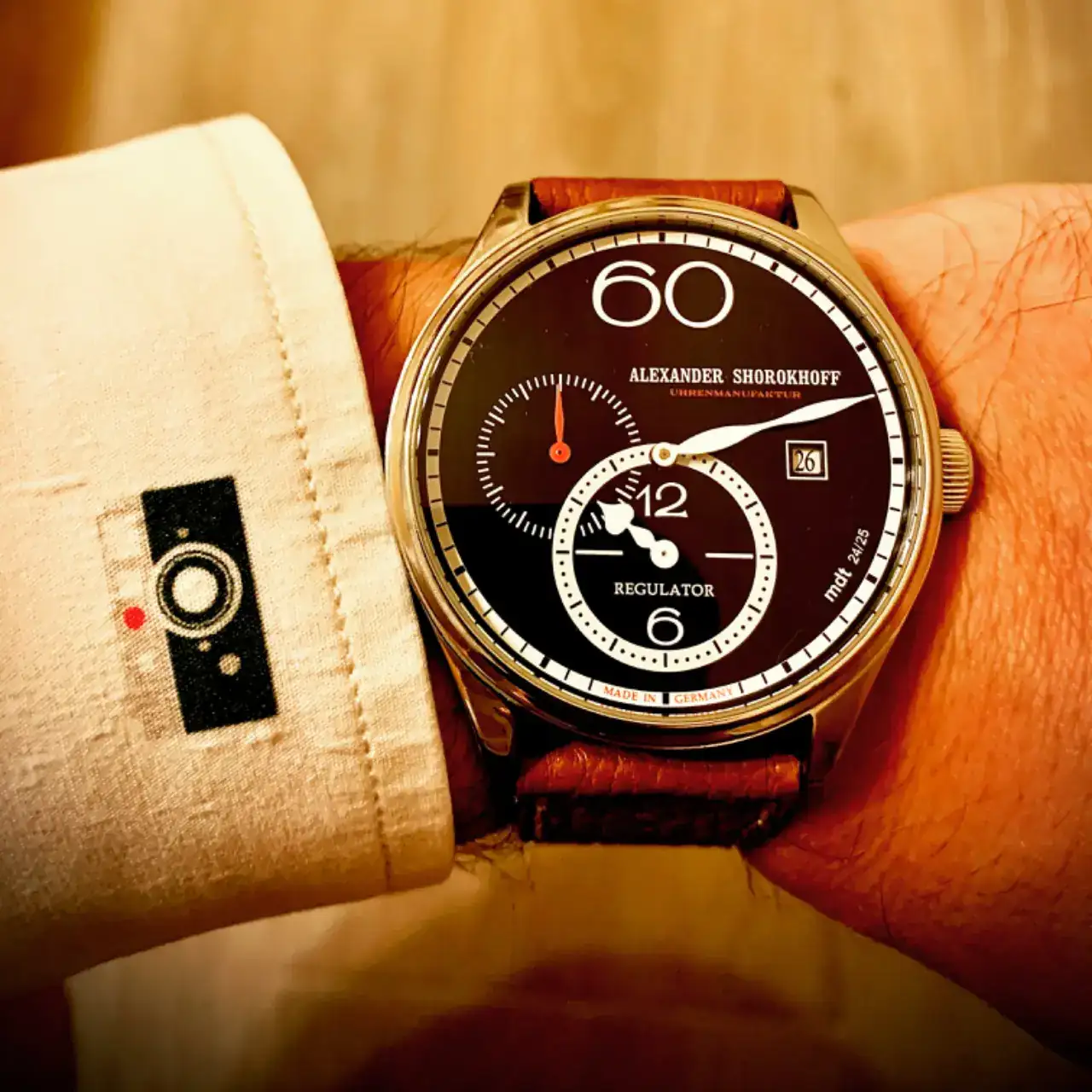 Allá por 2015/2016, fui con mi mujer (entonces novia) a un acto relojero a través de la revista MdT de la que soy suscriptor. Nos invitaron a Marbella ya que una marca iba a presentar en exclusiva sus relojes para venta en España en una joyería de la ciudad. Allí pasamos una velada estupenda, conocimos al CEO y diseñador de la marca y me enamoré de mi Alexander Shorokhoff Regulator MR01, que además hizo una edición limitada de 25 piezas para los suscriptores de la revista, y me cogí la numero 24.