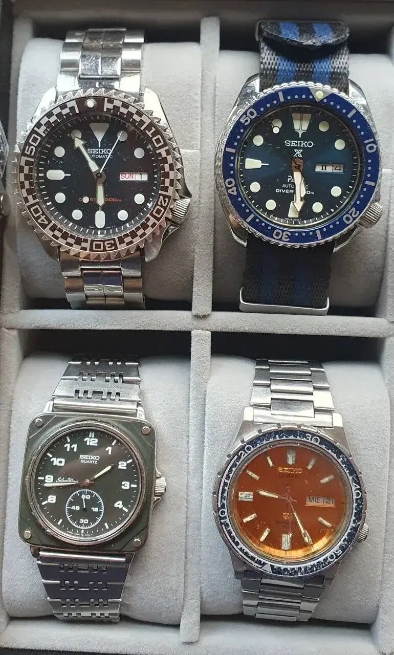 Como los relojes que desde hace un tiempo seguro que me veis son los soviéticos, pues presentaré una caja donde tengo mis Seiko. No son todos ya que tengo en el taller de Herminio alguno más. Cuando vuelvan, los mostraré en este hilo 😉.