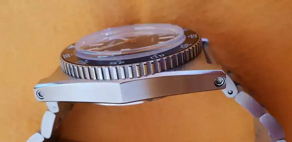 - 120 clicks unidirectional bezel with ceramic insert filled with BGW9 lume