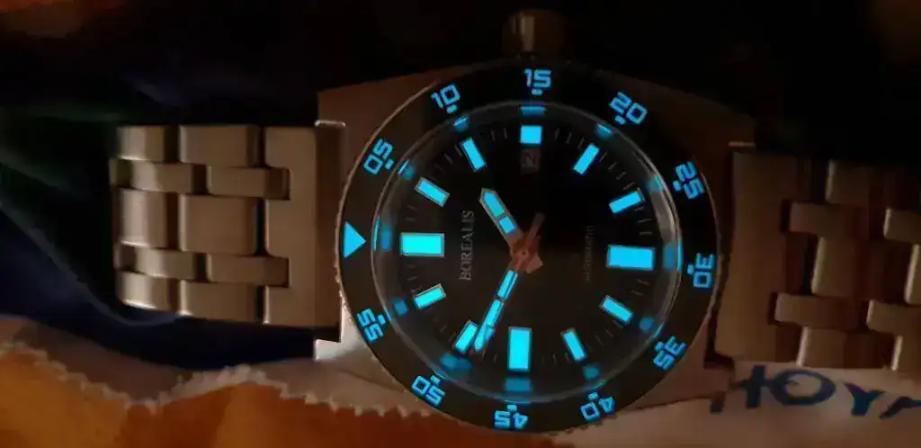 - Swiss Made BGW9 Superluminova applied to dial, watch hands and bezel