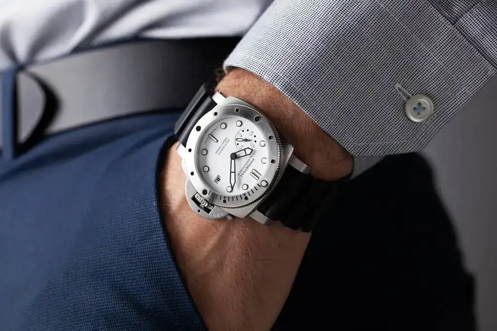 Siempre me han gustado los Panerai, tanto los Submersible, como los Luminor sencillos dial "sandwich". Hace años tuve encargado el Sub de 42mm con bisel cerámico y acabé renunciando a él antes de que llegara. Con el mismo motivo base, dudas con el tamaño. Este año y con el lanzamiento del (increible) dial en blanco, he decidido tirarme al charco y darle una oportunidad. Veremos si acaba quedandose en la caja, no lo tengo muy claro.