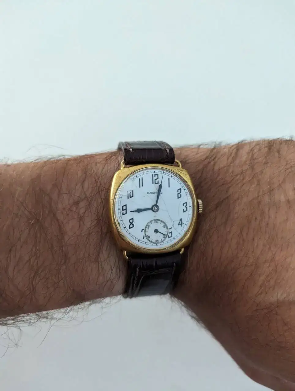 Pues a mi esa correa me encanta (sin ver el estado tan solo con lo que se ve en la foto). Sino una negra o marrón exótica (como la que lleva no?) le iria genial 😊Hoy voy a sacar a pasear este C.Coppel, creo que 1920, que encontré estropeado y después de meses de trabajo vuelve a la vida.