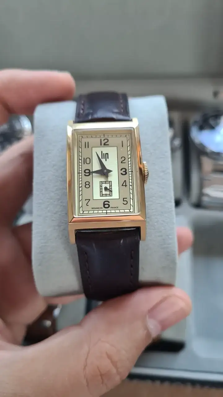 Este no tiene ni pizca de oro jeje, pero fue un regalo y el reloj me encanta, tiene una esfera art deco muy bonita, los de Lip venden la historia de que este reloj(su version antigua de oro puro y movimiento manual) fue entregada a churchill, ahora no sabemos si llego a usarlo).
