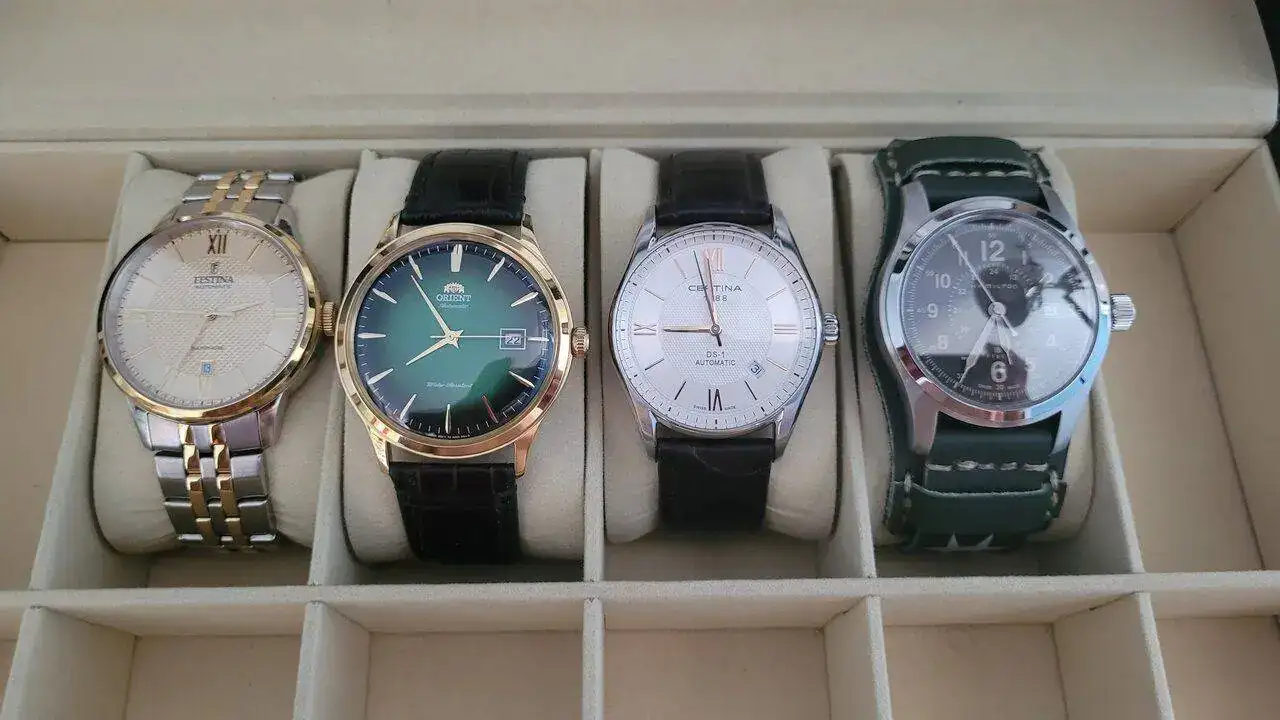 Resto de automáticos: un Festina con mucha carga emocional, un bambino imprescindible en toda caja, un Certina DS1 con movimiento ETA 2824 y un Hamikton Khaki con reserva de marcha de 80 horas. Todos con parada de segundero y posibilidad de remonte manual.