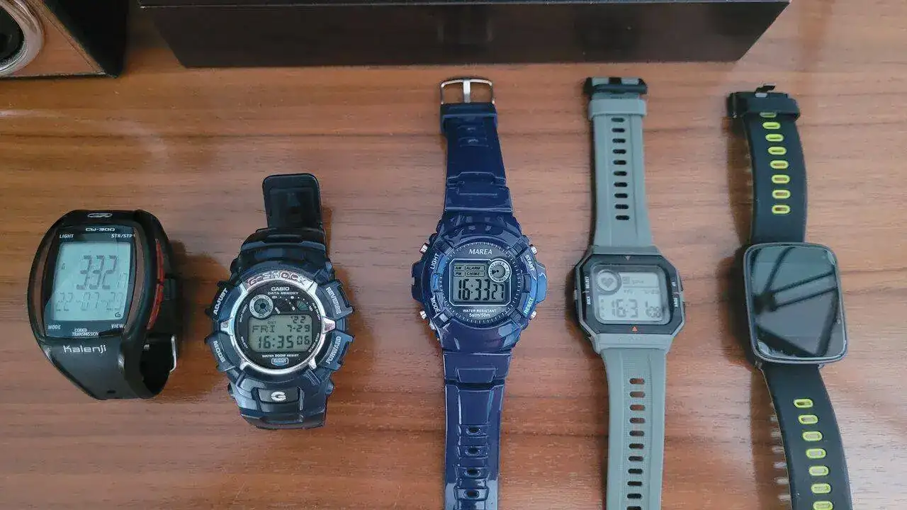 Los deportivos: uno del Decatlon, un G-shock, Marea, y dos pulseras de actividad.