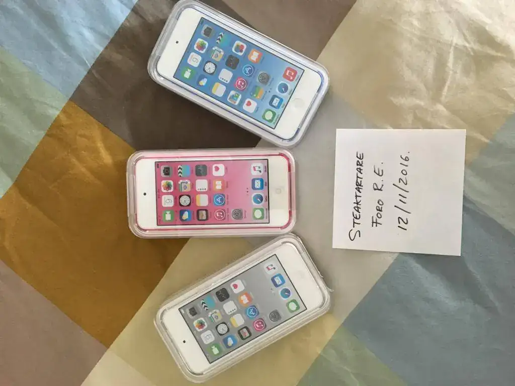 Se trata de 3 iPod Touch, el modelo actualmente en venta y de 32GB cada uno. Dispongo de uno Rosa, otro azul y otro Plata. Lo adquirí con la idea de regalárselos a mis hijos por Navidad y se me han adelantado