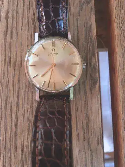 3.- Finalmente un Omega. Este Omega era de mi abuelo, y como ya he comentado que mi padre no era aficionado, resulta que lo lo tenía en un cajón. Nunca lo restauró. Lo hice yo, muy parcialmente; cambio de correa, plexi, aceites. Como supongo sucede con muchos foreros, los abuelos que tenían Omega explicaban que era el reloj que llegó a la luna...Este funciona también muy bien, es automático y se adelanta unos 20 segundos al día después de...calculo 65 años.