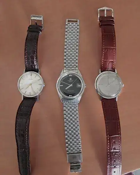 2.- El Favre Leuba gris es todavía mas antiguo, mecánico, solo cuerda. También era mi padre y lo compró antes del Harpoon, apenas se lo vi puesto pues usaba el Harpoon. (antes del Harpoon el gris era su reloj de diario). Así pues, pasó de la cuerda al automático y del automático al cuarzo. Supongo que es una evolución común de los 60 a los 80. También le hice una puesta a punto, cambio de correa, aceites, y plexi y funciona a la perfección tras...calculo 60 años.