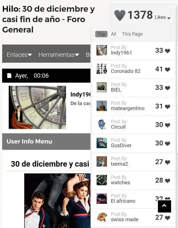 Me honra decir que en el hilo de ayer "el Primero" fue el que recibió más likes, un placer participar.