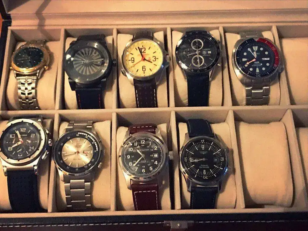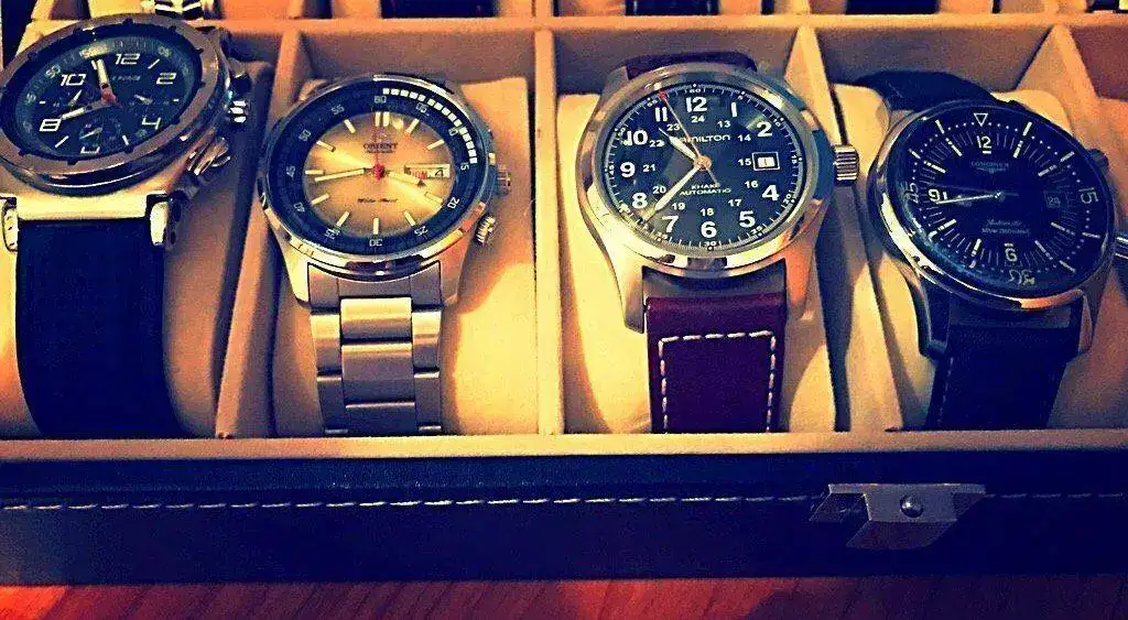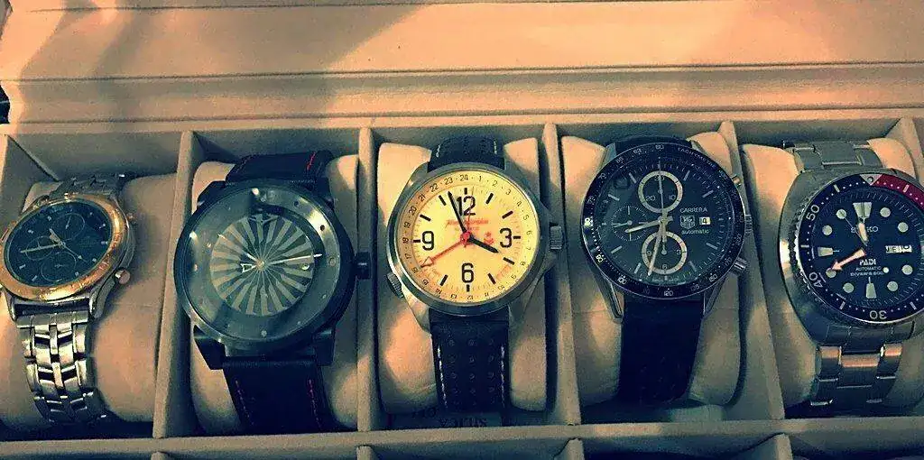 De izquierda a derecha: El Lotus fue un regalo de mis padres por mi 18 cumpleaños, así que aquí se quedará para siempre; el Zinvo Blade Gunmetal fue un antojo por la originalidad de su rotor y la insistencia de Facebook. Siempre consideré que tenía que tener un ruso en mi caja, y este Vostok Komandirskie K34 me gustó por su esfera y su lumen.
