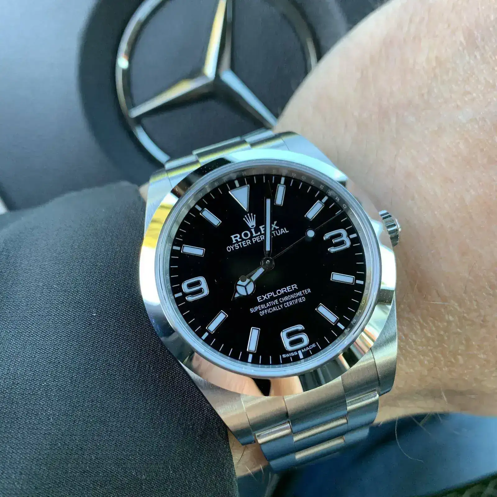 Con independencia de la medida de la muñeca, en esta foto se ve perfectamente la perfecta armonía y proporción del Explorer 36mm.Las principales diferencias que yo veo a nivel estético y que juegan a favor del modelo de 36:
