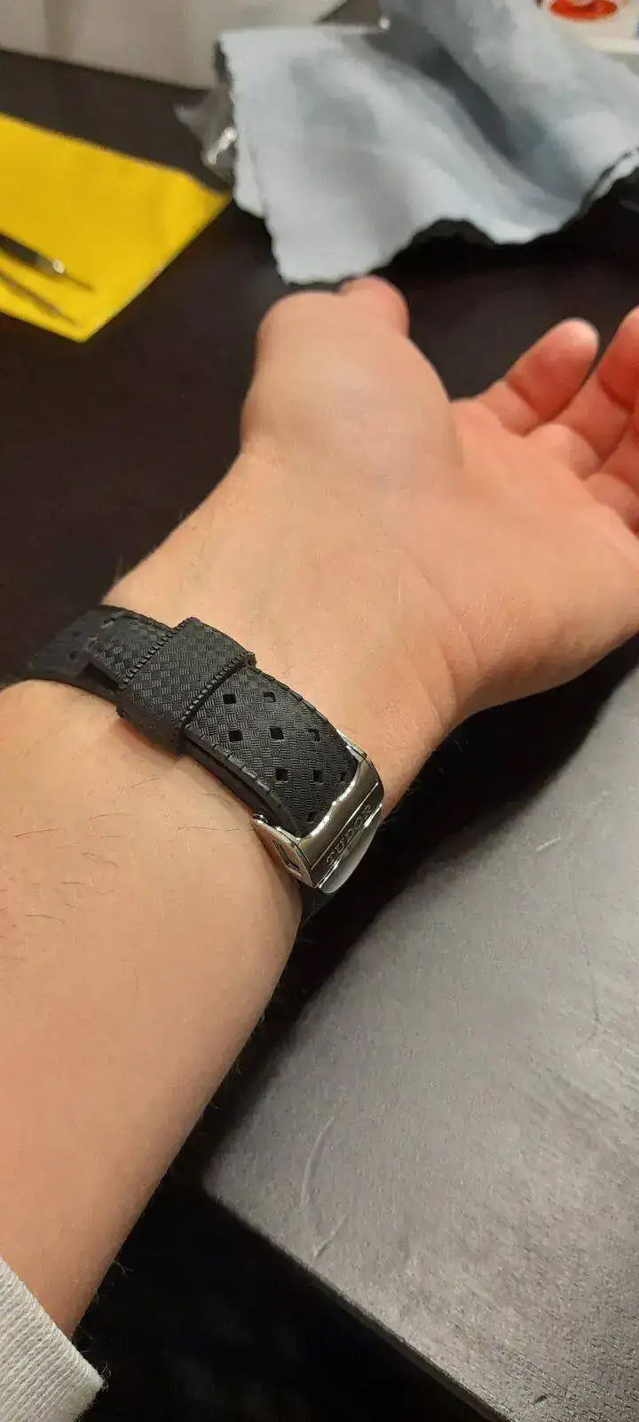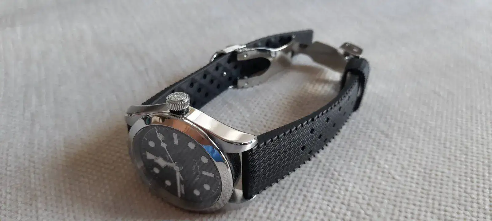 No puedo comparar. Es la primera correa de goma o caucho que tengo. Me resulta muy cómoda y, sobre todo, me permite aprovechar el deployante de Tudor como quería inicialmente. También me gusta que decrezca en grosor (además de anchura), porque no genera un bulto enorme en el cierre de la muñeca.