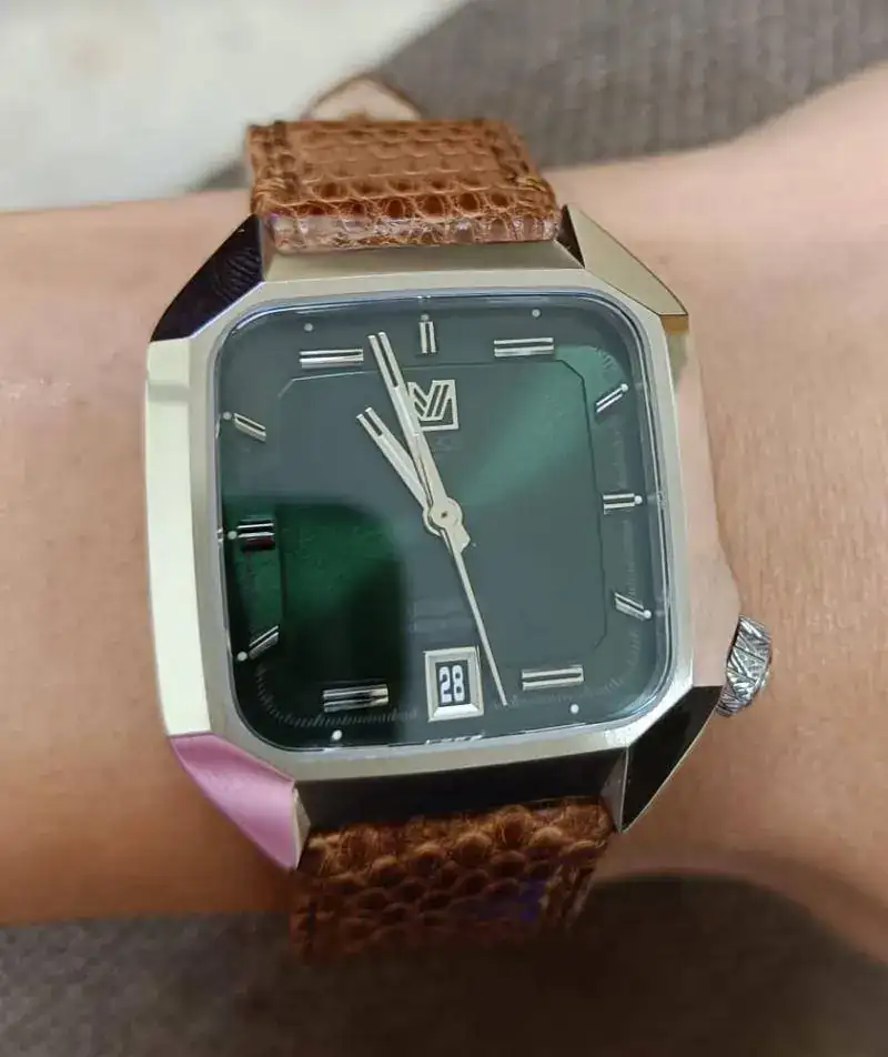 Una de las particularidades positivas que ofrece un reloj cuadrado de 36mm, además de una forma distinta de caja (comparada con la tradicional de formas redondas) es que aporta mayor sensación de tamaño. Se dice que, generalmente, equivalen a casi 40mm en formato redondo.