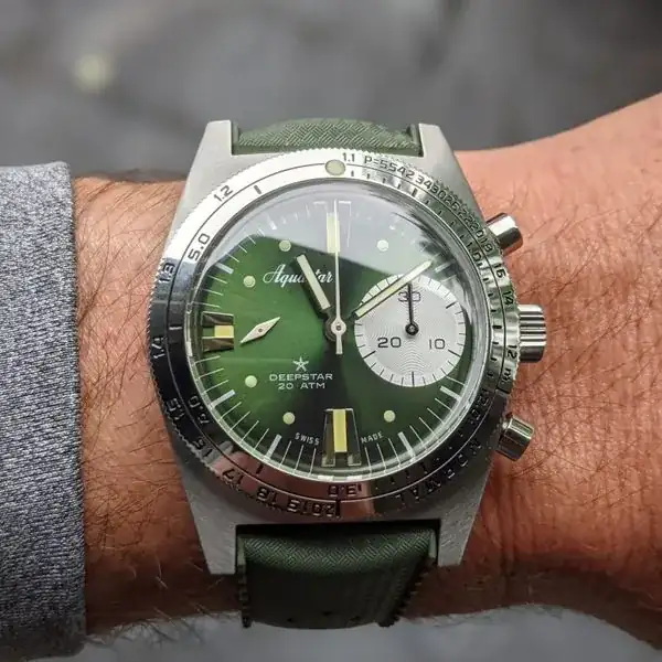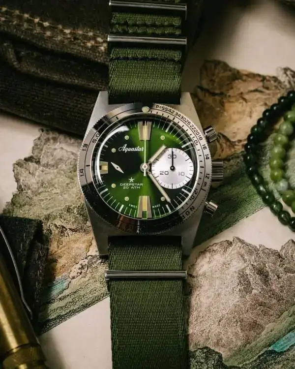 Tanto el TUDOR BB54 como el AQUASTAR 60 (e incluso el Deepstar II) son fabulosos.La verdad que es precioso este Aquastar. Llevo todo el día con él metido en la cabeza.... pero se que debería aguantarme para llegar a mi objetivo que es el BB54. Aunque cada vez que lo veo más me llama. La pega que no hay ninguna foto o vídeo más allá de las de publicidad para ver bien ese verde.