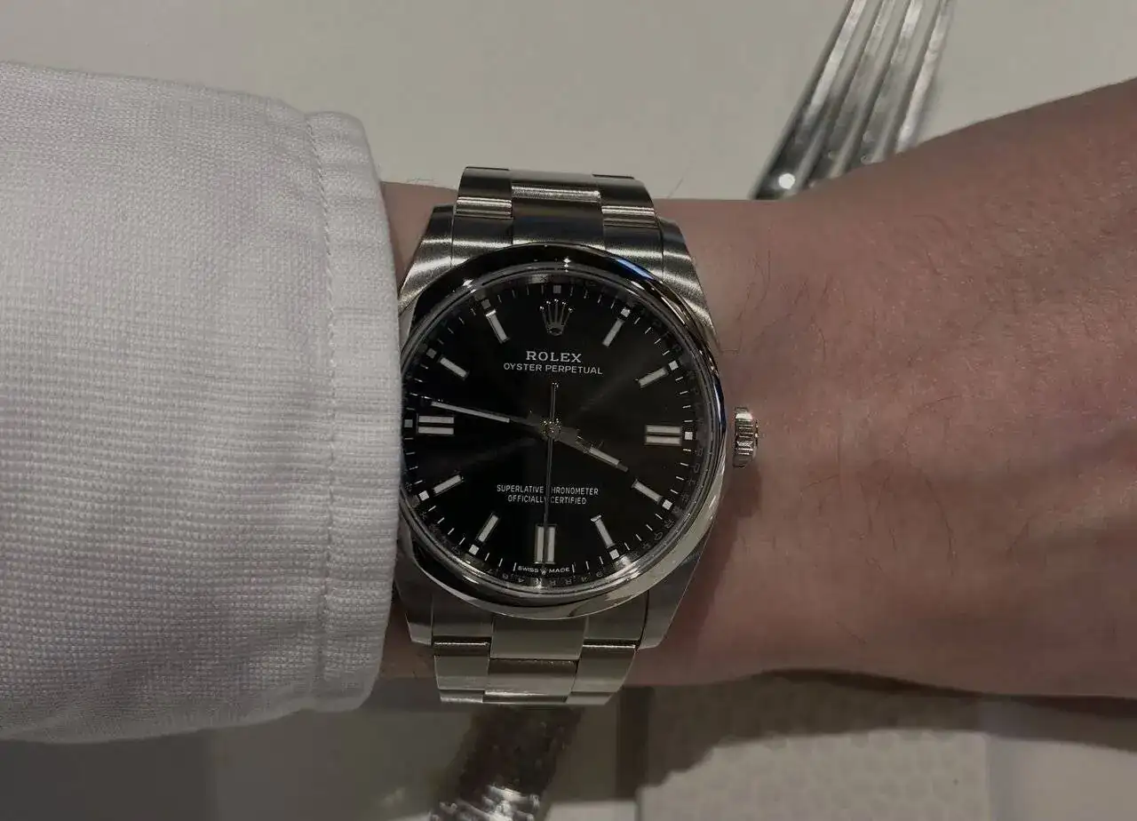 -Los índices circulares del 60, combinados con los bastones de las 6 y las 9, me gusta más que la esfera de bastones de RADO. Además, al estar situados en el extremo, harán parecer a la esfera más grande y despejada.