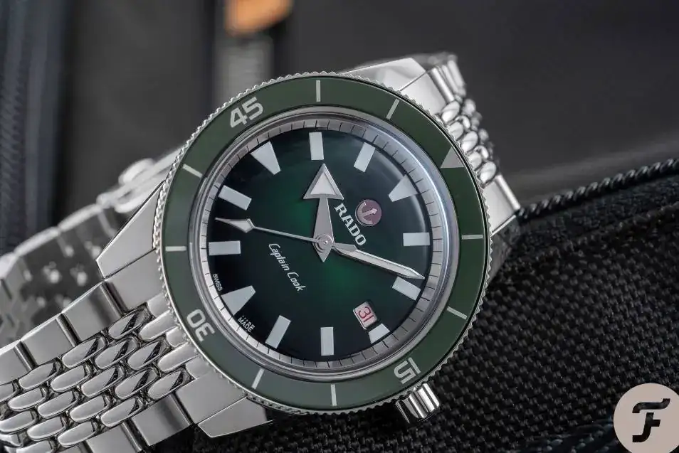 Edito: Admito que la continuidad cromática de la esfera del Cook en su bisel me gusta mucho. Lástima que no se haya dotado al anillo interno del mismo tono verde.