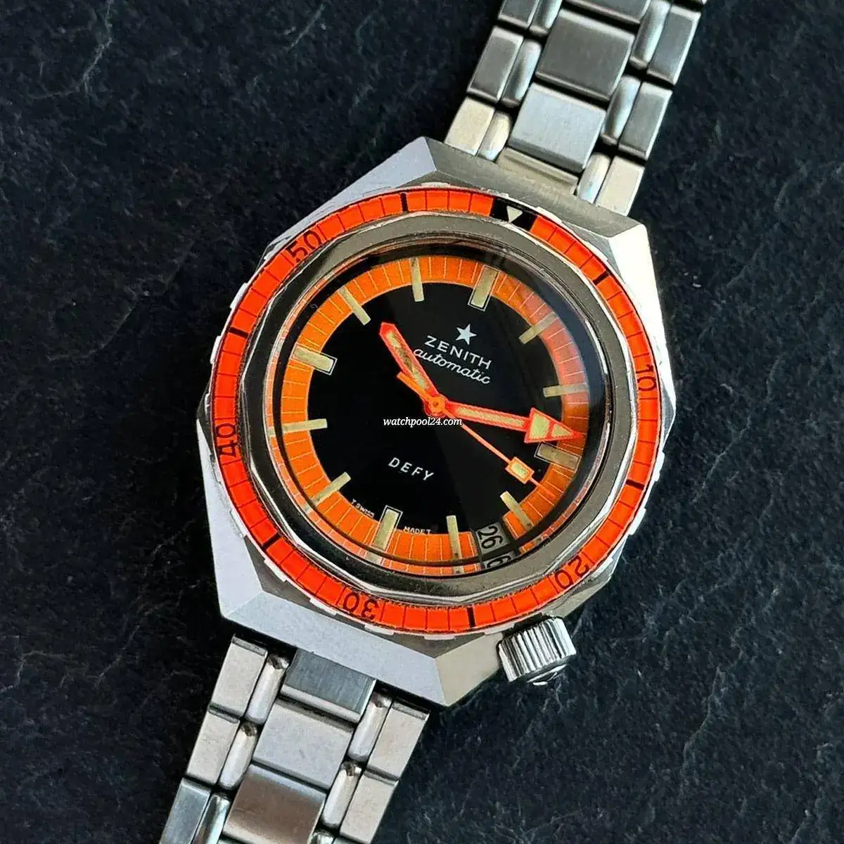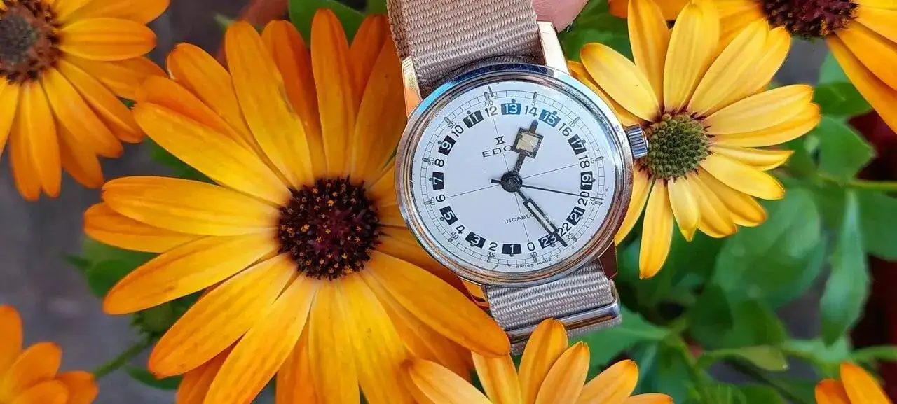 Los biseles de baquelita naranjas de aquella época eran una atractiva delicia, pero lo que realmente me entusiasma de ese modelo es la caja ¡me chifla! Eso sí, en el sótano hay un par de Defy de esos espectaculares y siempre me había parecido que eran más grandes ¡me has robado esa tranquilidad!