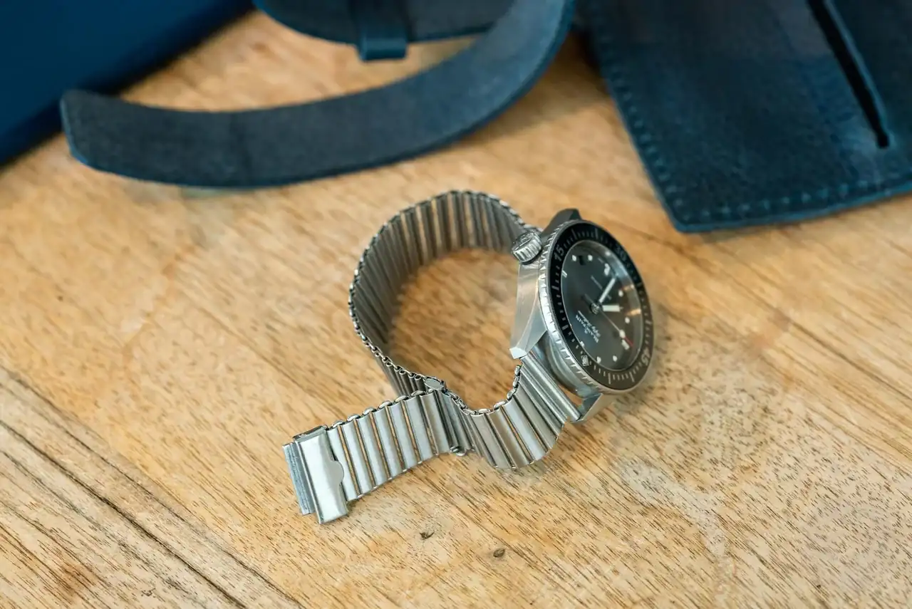 Por otra parte, su brazalete tipo Bonklip de 19mm (que no sirve para el reloj comentado) por su cierre a presión. Cuesta 79€.