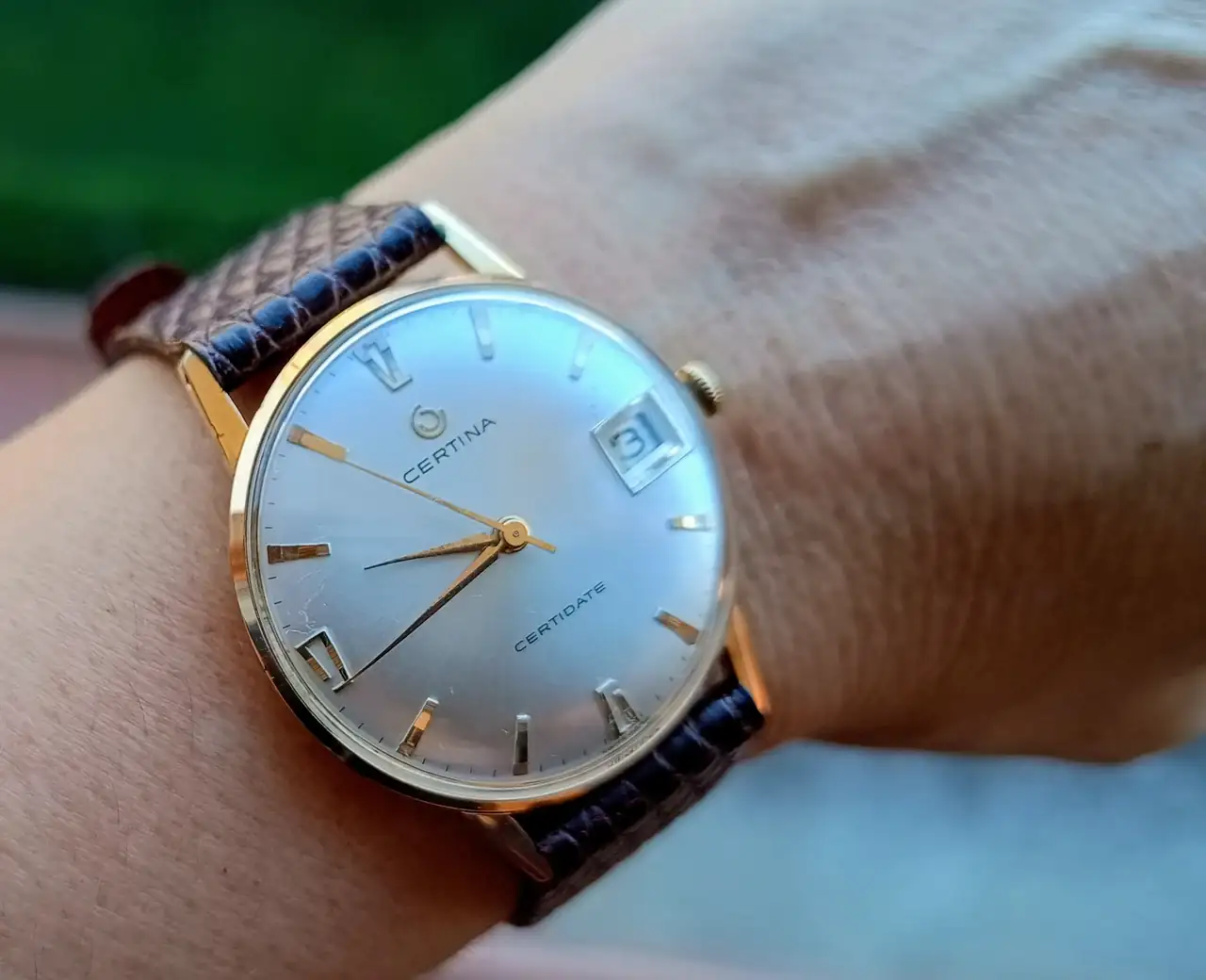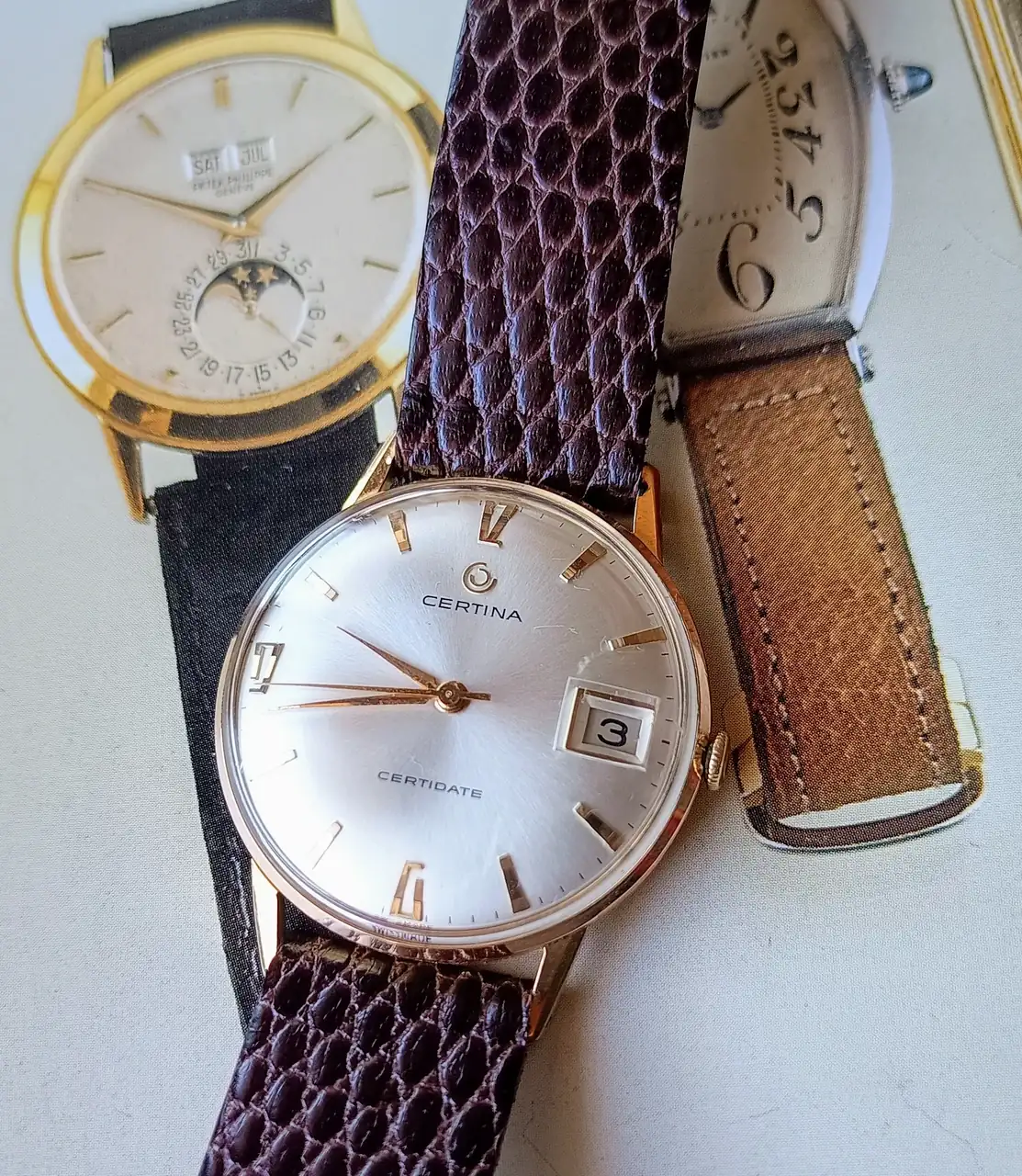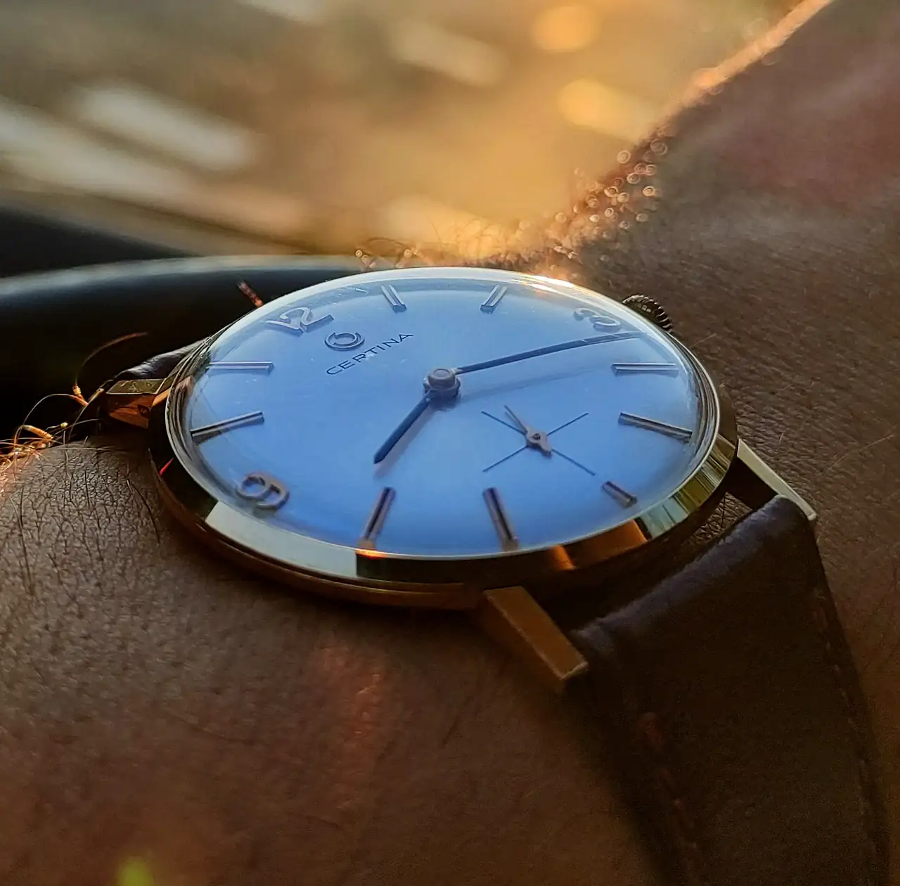 En el mío la esfera es de las abombadas con un soleil espectacular, las asas no son rectas, sino en disminución y apenas tiene bisel; la corona sí parece muy similar. Segundero central y fecha hacen que tampoco creo que coincidan en calibre, aunque ambos serán estupendos, como todos los que hacía Certina en esa época![]()