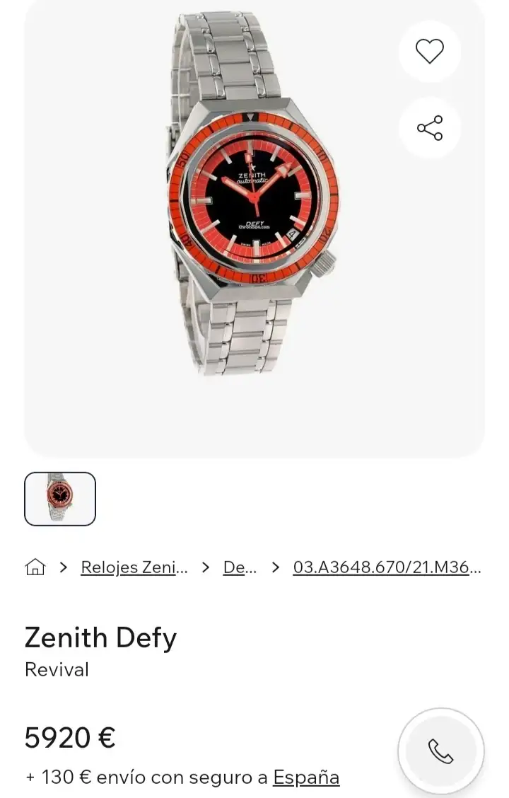 Es una reedición lanzada este año del modelo de 1969.¡Pues tienes razón! La esfera coincide bastante... A mí en los Defy se me van los ojos a la caja lo primero ¡me encanta! Muy chulo el bisel también, replicando la baquelita del setentero ¿con zafiro?