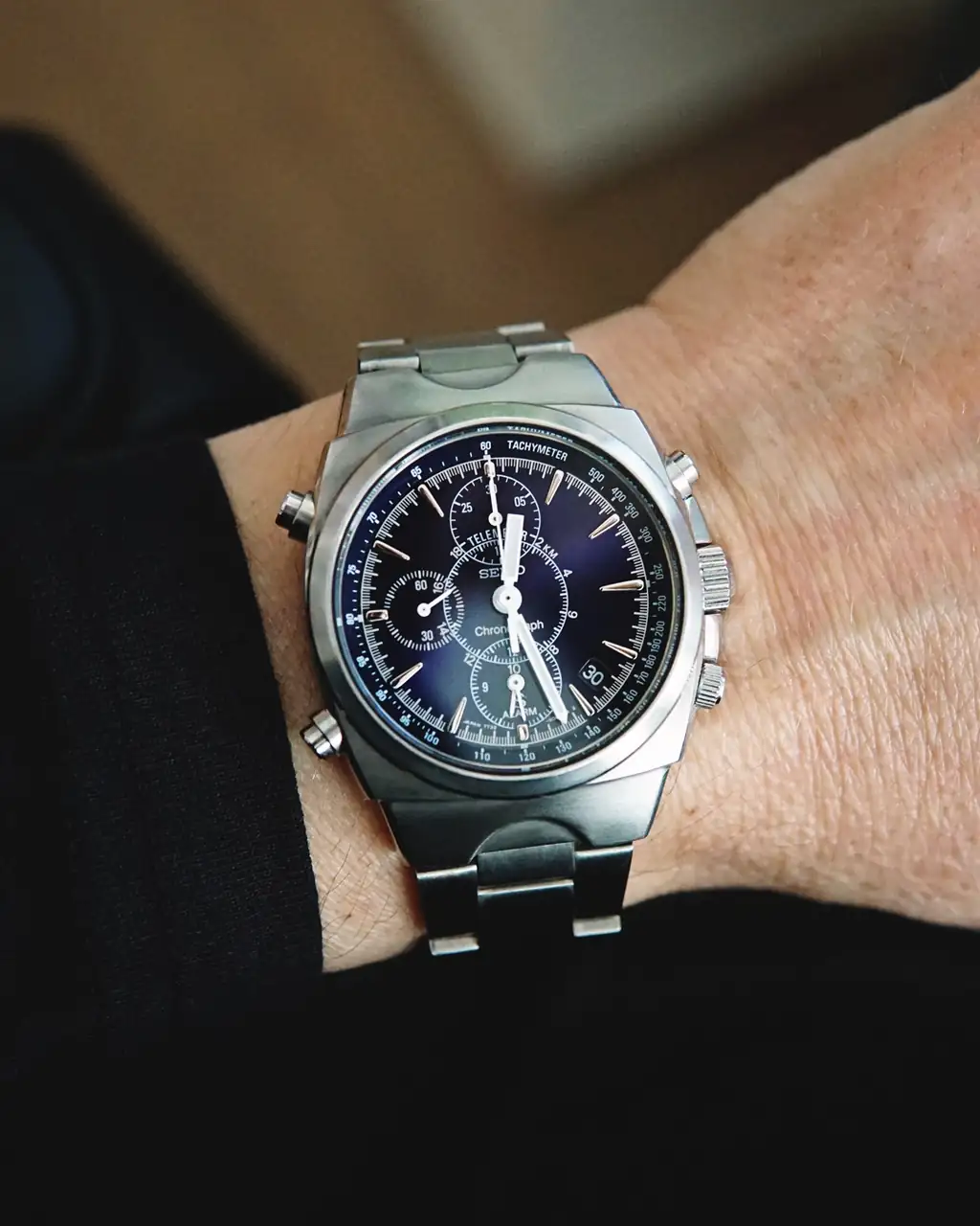 Otro Seiko SUS que me llegó ayer, me gustó tanto el blanco que no me pude resistir a esta versión posterior con brazalete, dial azul oscuro y agujas blancas.