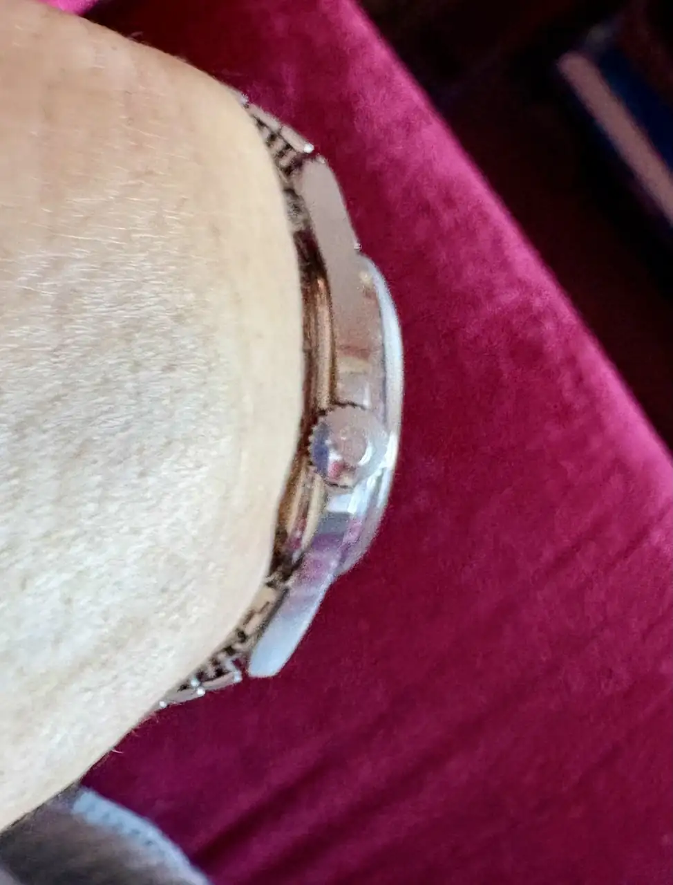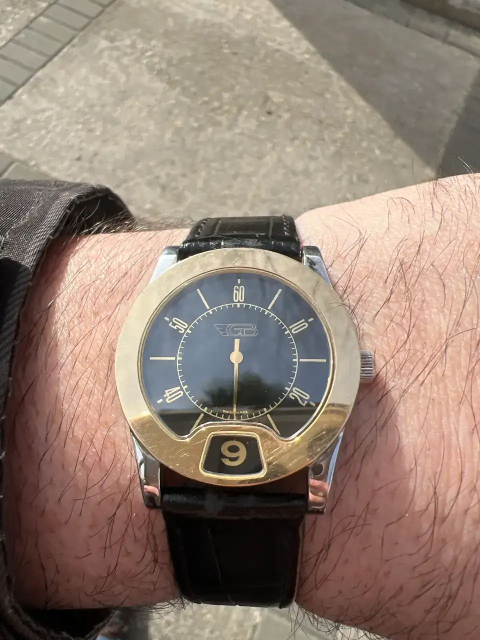 Pone gb en la esfera, es la abreviación de Gianni Bulgari, sin poner enigma, es horas saltantes de cuarzo, me parece bastante interesante, pues hasta que no llega a en punto no se mueve el dial de la hora, sinceramente es lo que esperaba que hiciese el crepas inmare, pero este va cambiando poco a poco en vez de saltar a la hora siguiente. Aparentemente es el mismo concepto pero con este cuarzo está bastante más pulido que con el automático. Por qué no se mueve el disco fechador hasta la hora en punto.¡Qué bonito! Y misterioso, sin indicaciones de marca o modelo en la esfera. Cuéntanos más, por favor 🙏