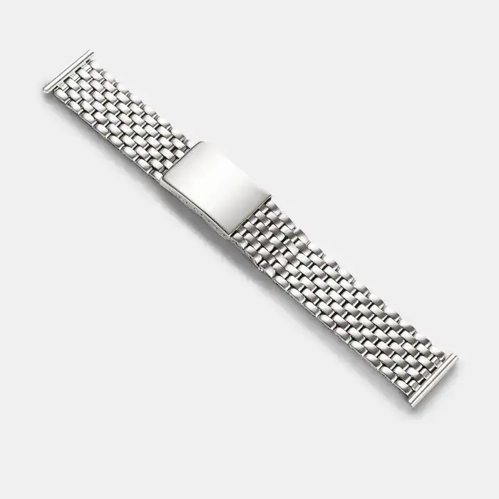 El brazalete BOR de 7 filas de Forstner lo tienes en 18mm, pero su cuerpo central es de 16mm. Con éste, no fallas y mantienes el estilo de la configuración original pero sutilmente adaptado. El cierre del Forstner es la caña.
