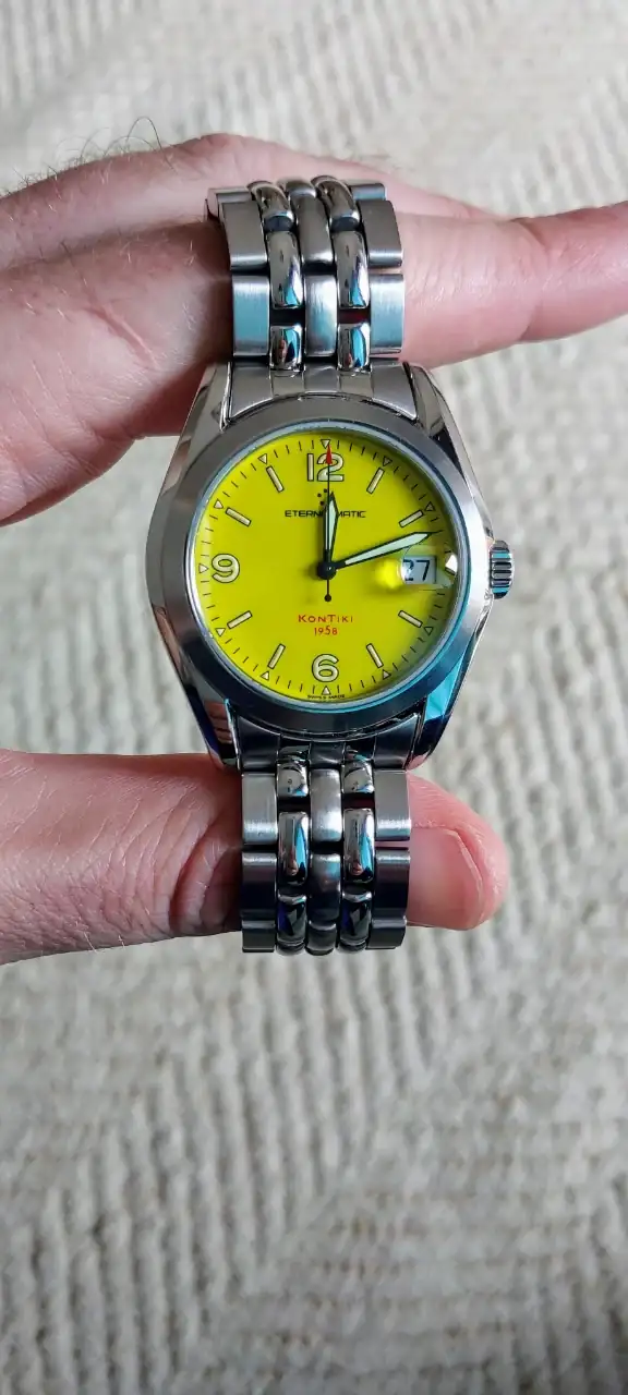 Te felicito por la incorporación. Para mí,es el amarillo más bonito de ese tamaño, con unos índices arábigos perfectamente conjuntados con los índices bastones y sus agujas, que otorgan una legibilidad estupenda.