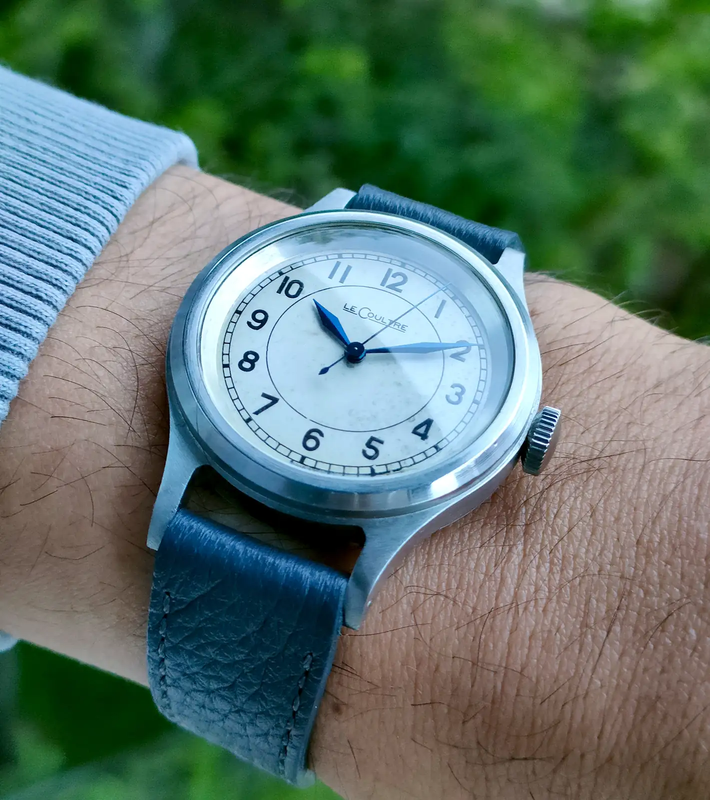 Se aprecia impecable y se ve genial en tu muñeca. Enhorabuena. Un gusto y elección excelentes.Ha tardado, pero ya está aquí el nuevo miembro del club, 36mm clavados: Lecoultre 6b/159 RAF del 56