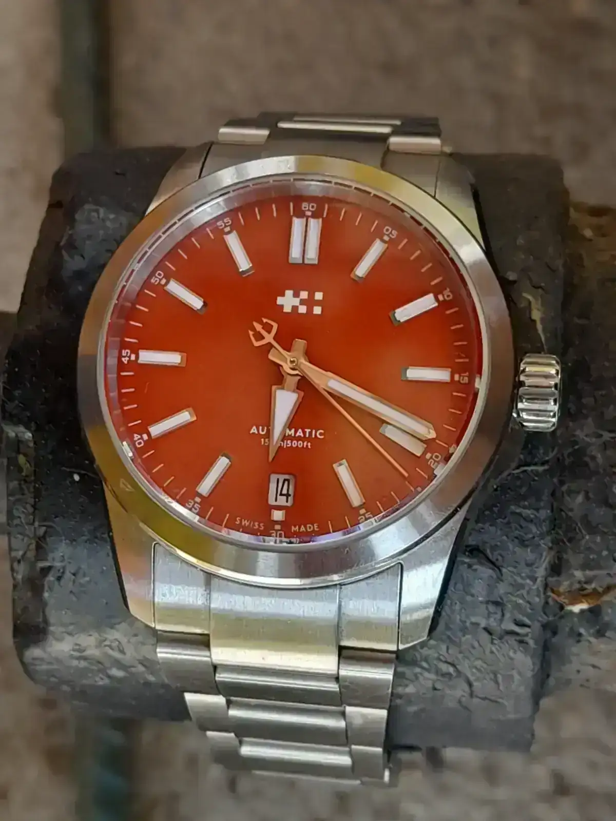 Gran adquisición. Te queda muy bien.Hace dos días que me llegó este relojito. Lo he pillado para experimentar la sensacion de su tamaño, ya que hasta ahora, lo más pequeño que tengo son un par de 38 mm. Este solo llega a 35, pero he de decir que una vez que salvas la sensación (por falta de costumbre) de verlo en la mano y te lo pones, transmite una sensación muy agradable y una comodidad absoluta. La idea en el futuro, y si veo que lo usaré, sera hacerme con un vintage de más calado.