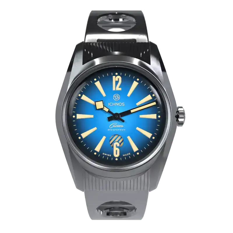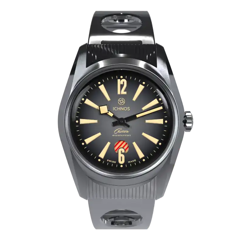 Su modelo Costiero está disponible en varios colores, 36mm de diametro, 46mm de L2L, WR150m, zafiro, calibre manual Peseux 7001, brazalete Rally con cierre autoajustable y cuatro años de garantía. Su pvp sin descuentos es de 1885€.