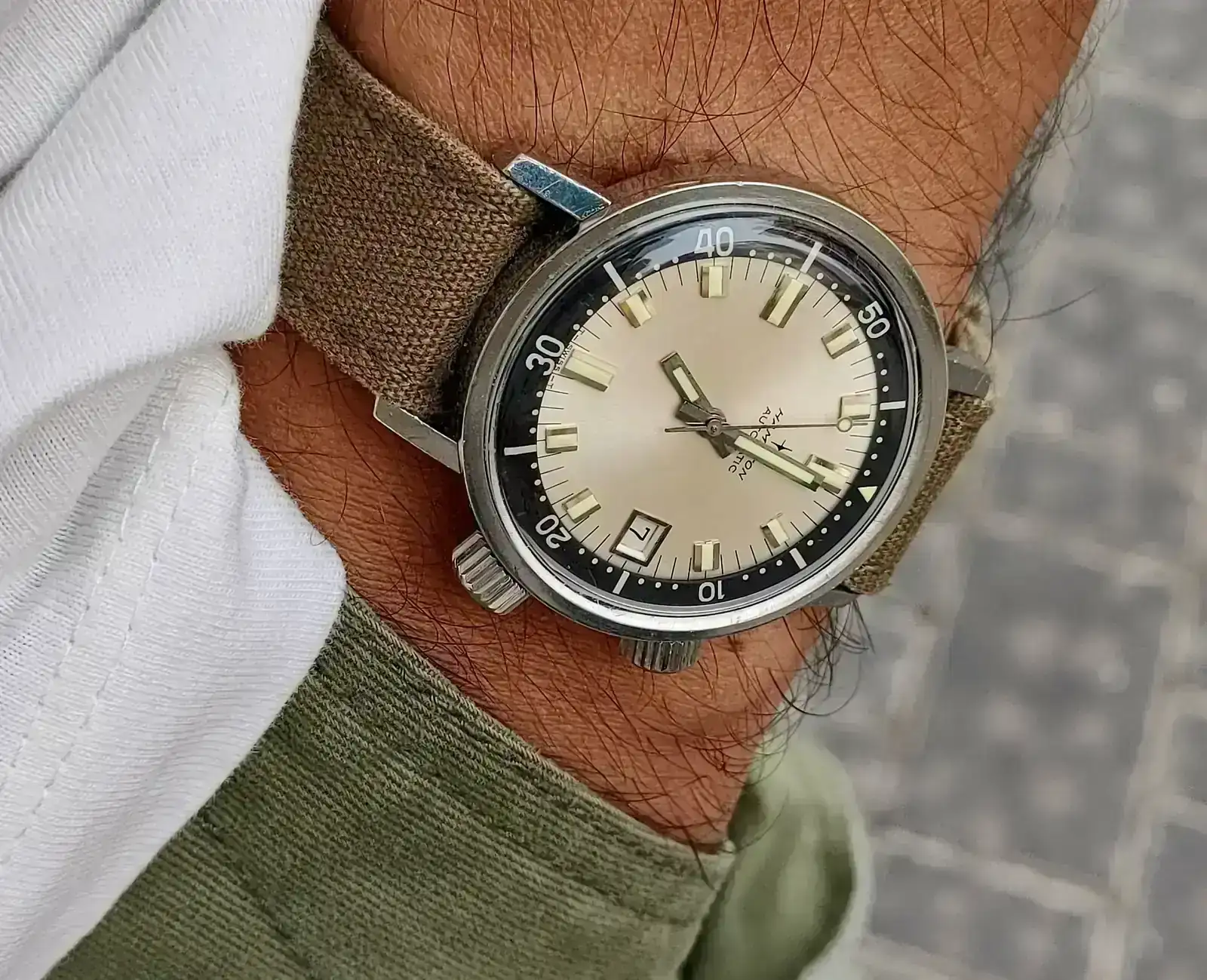 Gracias compañero, es un Hamilton super compressor de los años 60, también conocido como "Cape Horn" pues hacia final de su producción lo grabaron en el dial.Muy bonito. No conocía este modelo. ¿La correa es la original?