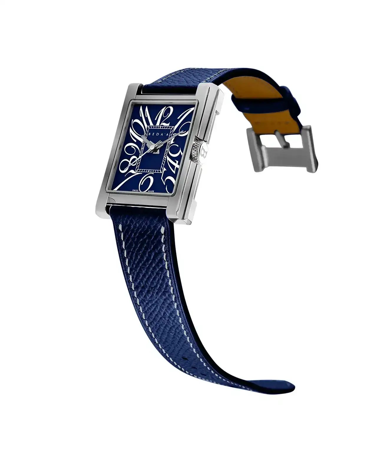 Con 36mm de diámetro, WR50m y movimiento mecánico escondido en una atractiva tapa grabada, su esfera azul celeste tornasolada ofrece un conjunto atractivo cuya correa 18/16mm merecería ser cambiada por una Rally😎.