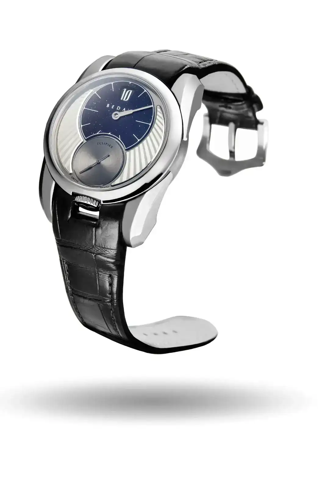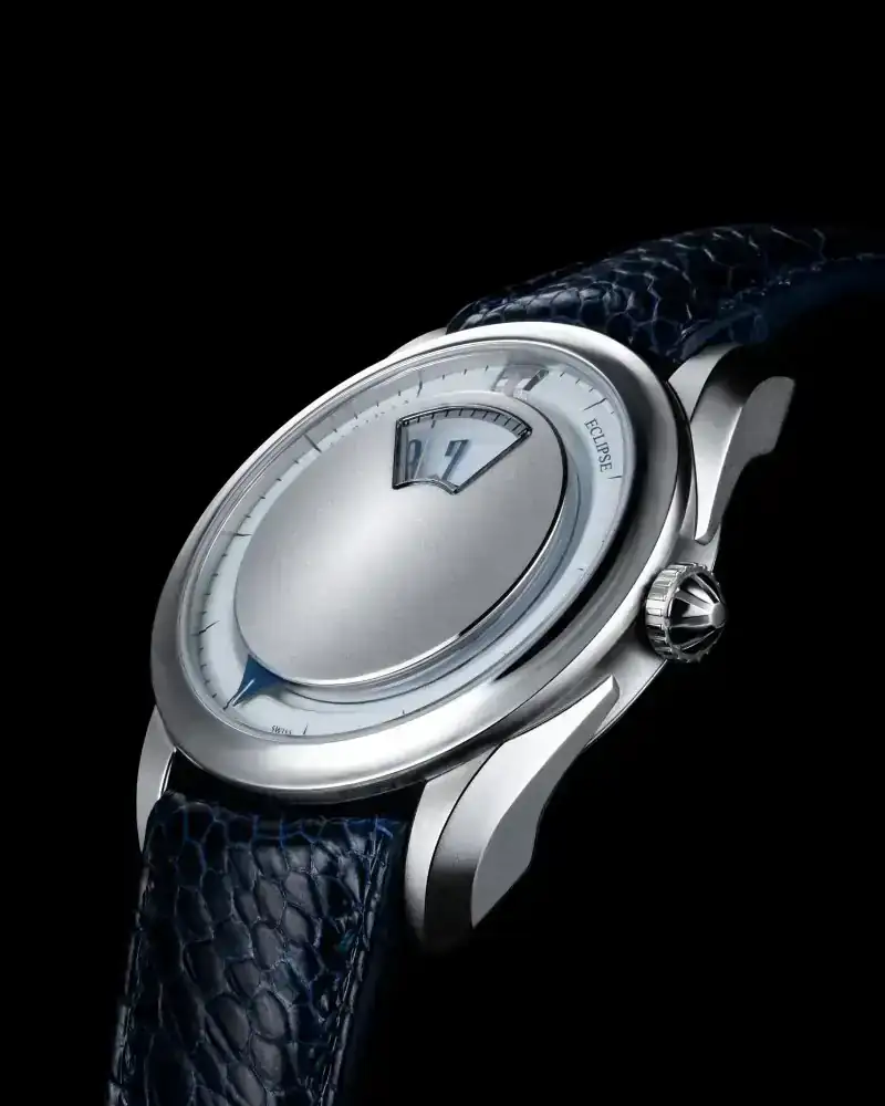 La otra es este peculiar Eclipse II, con 37mm de diámetro, corona a las 6, movimiento desarrollado con Dubois Depraz y pvp de 4000 CHF.