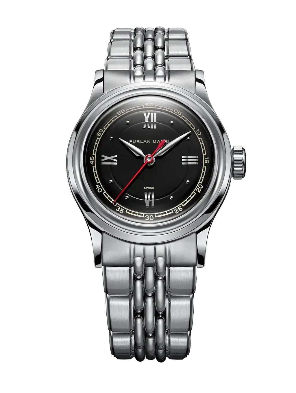 FURLAN MARRI editó el primer semestre de este 2025 el Red Hunter, un bonito reloj de 36mm, esfera negra, índices romanos y segundera roja.