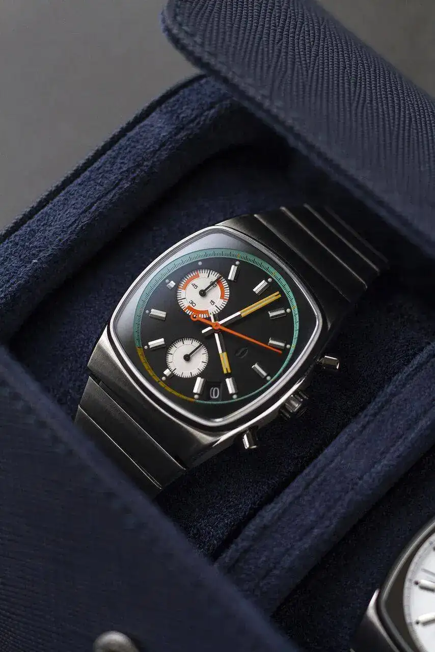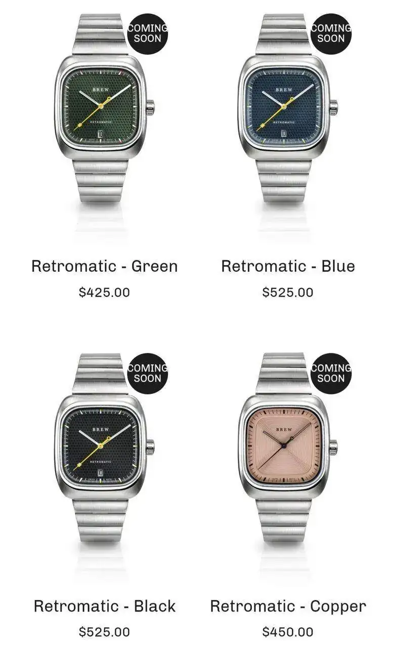 Es el turno del bonito Retromatic y sus 36mm, calibre automático Seiko y una bonita esfera granate perforada. Cuesta 425$.