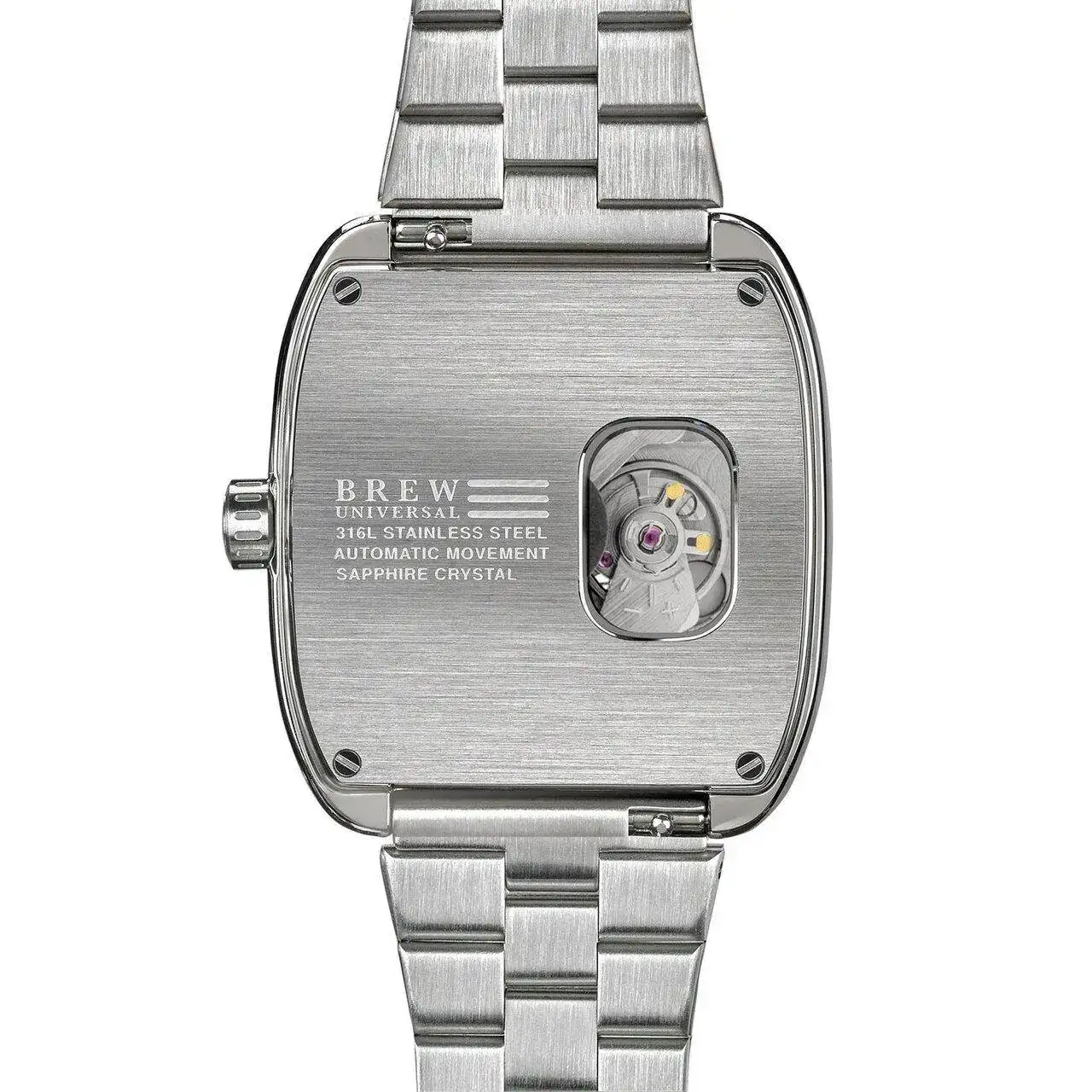 No aparece en su página.Unas cuantas páginas atrás se habló de BREW y su modelo Metric con calibre Mecacuarzo.