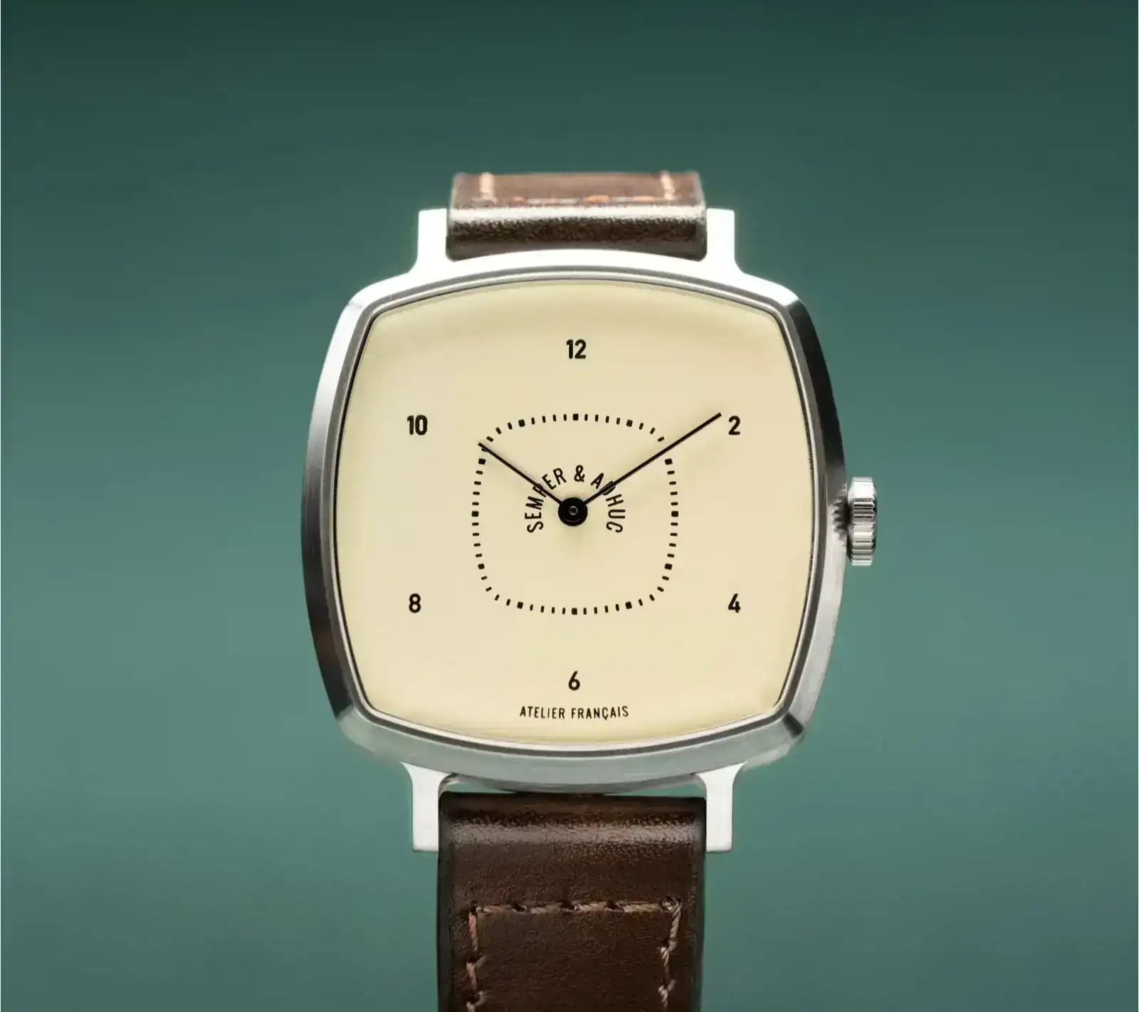 Las tres referencias (divididas en tres formas de caja: redonda, rectangular y cuadrada) que los franceses SEMPER & ADHUC tienen en común son sus 37mm, calibres manuales restaurados, ausencia de aguja segundera y un pvp de 2500€.